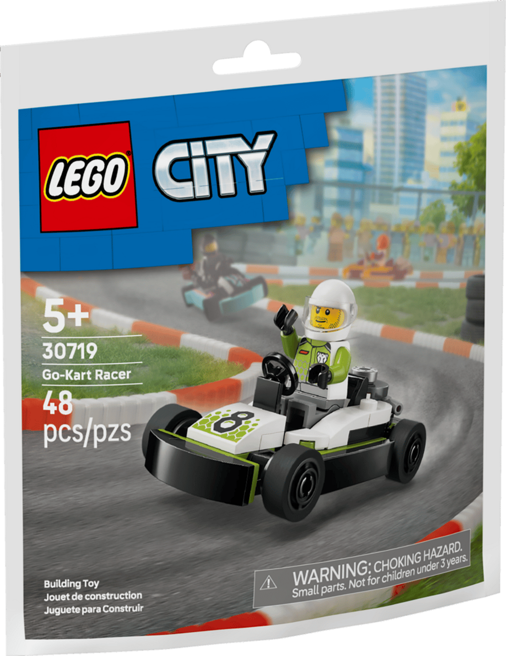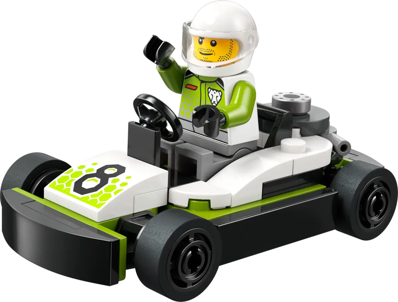 Estimula el juego creativo con el set LEGO City Go-kart, que incluye un vehículo de carreras de perfil bajo con neumáticos lisos y una minifigura del conductor con casco.