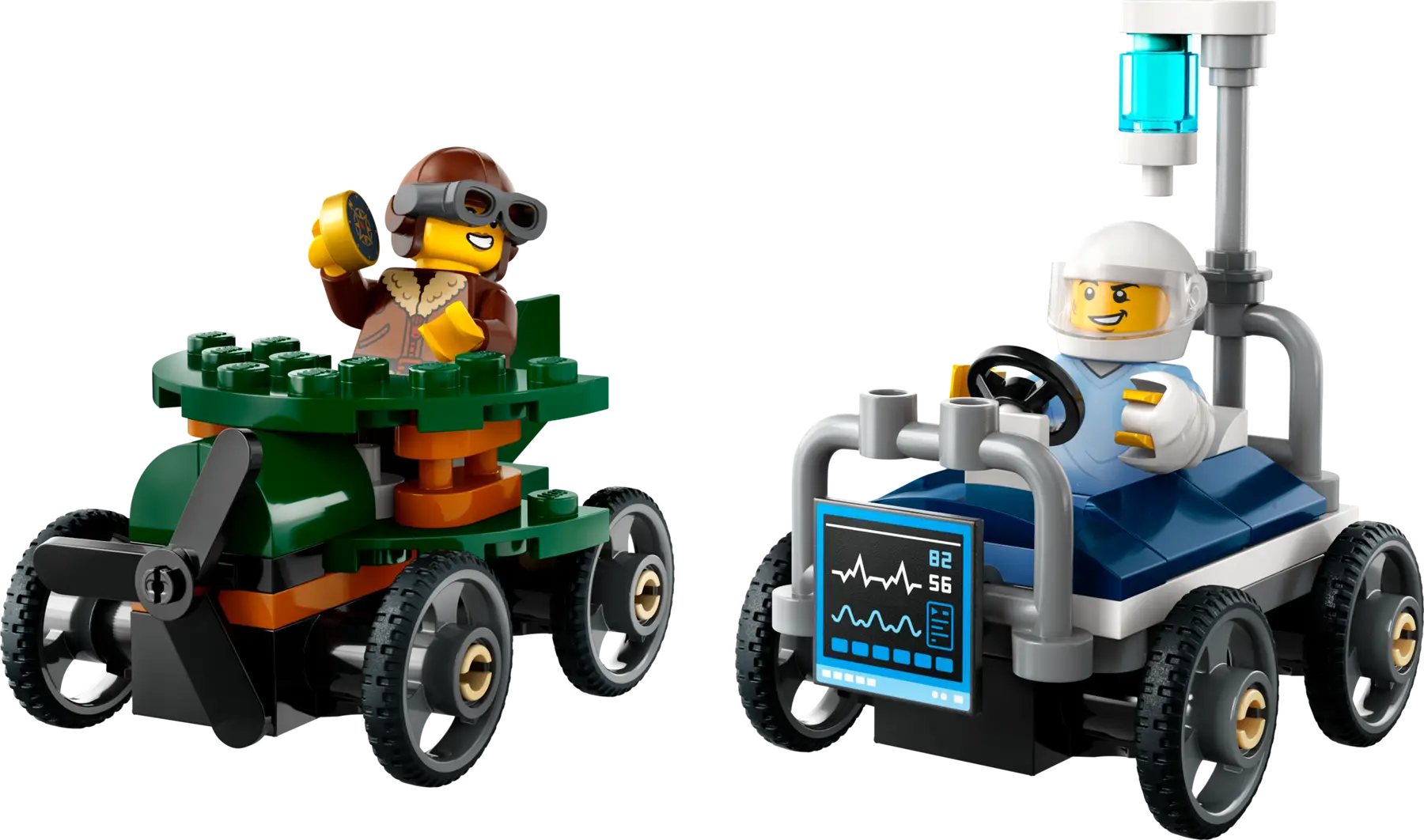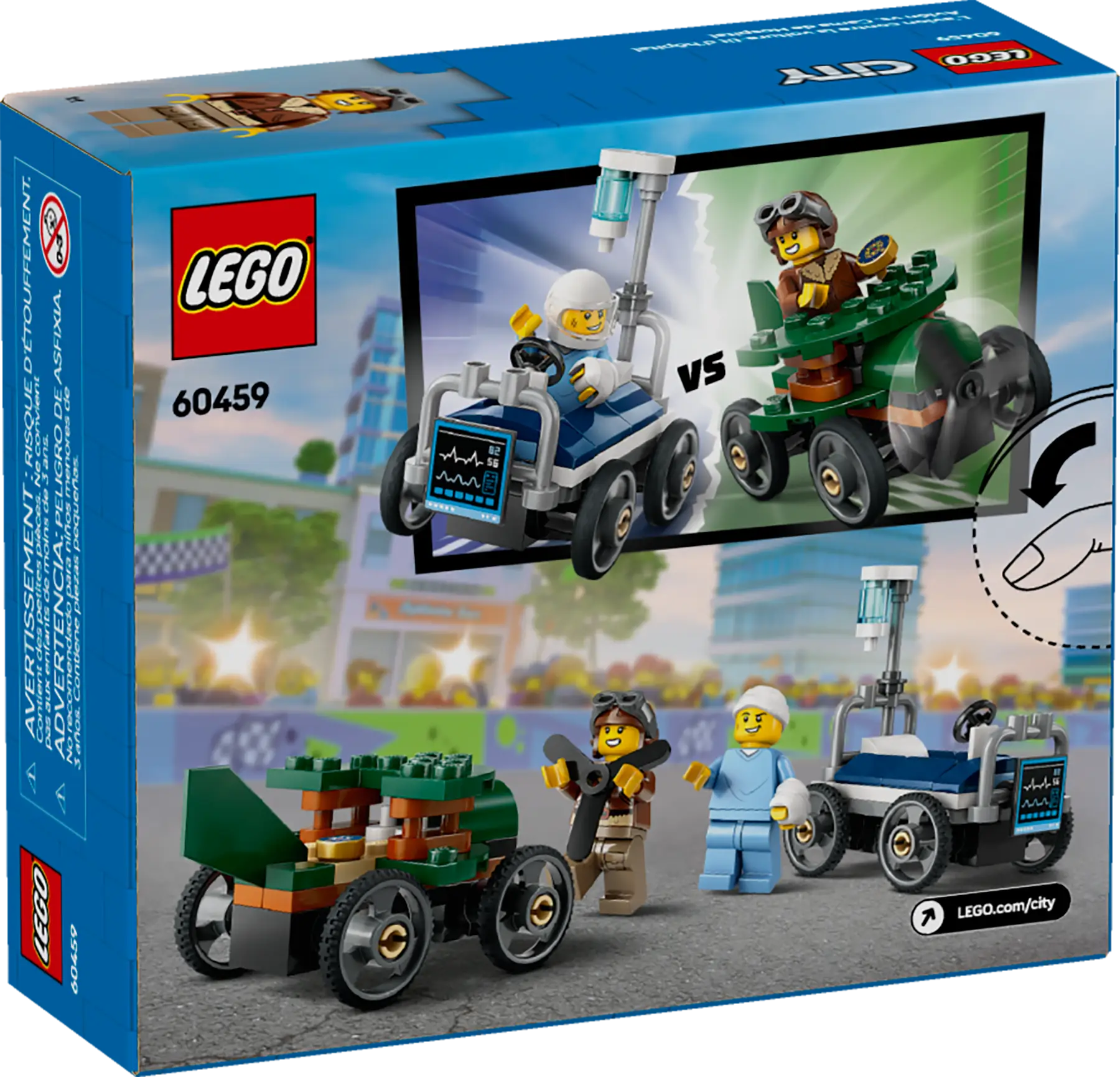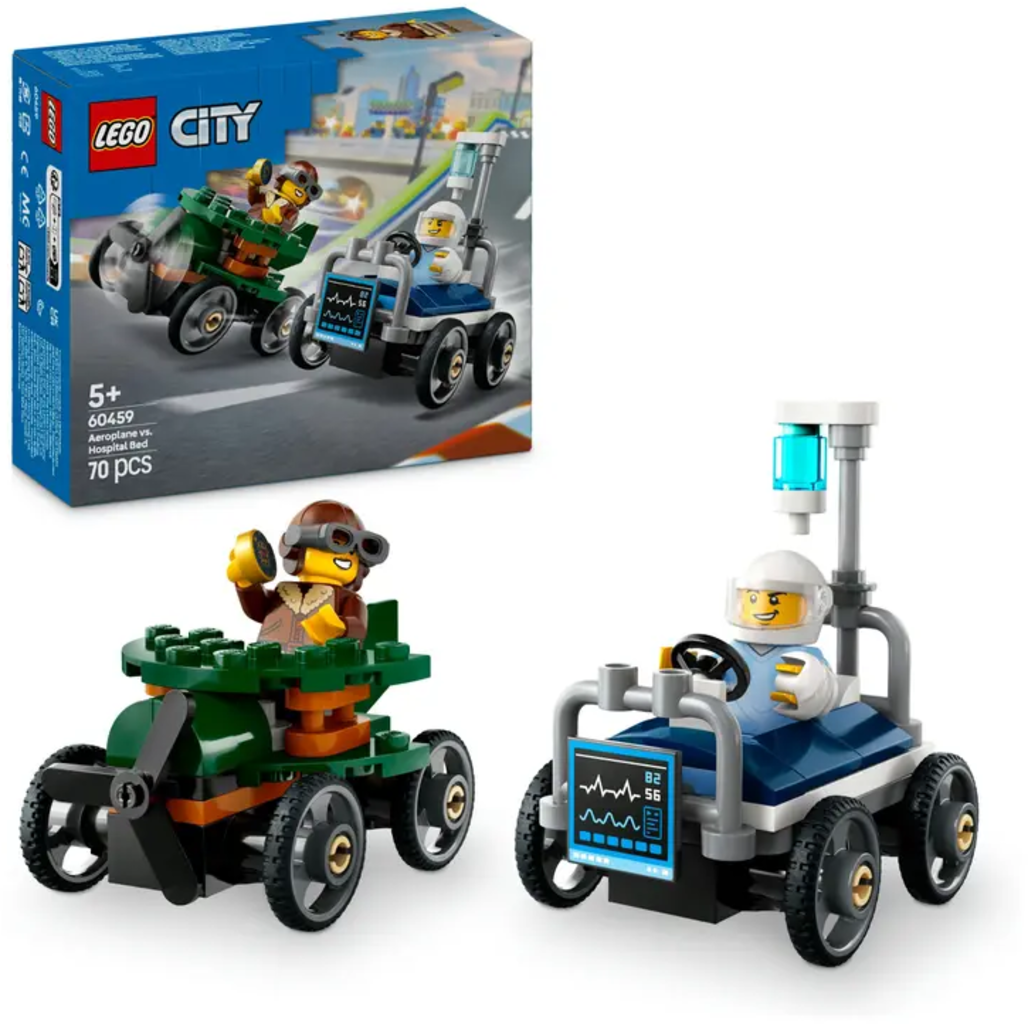 LEGO City - 60459 Pack de Coches de Carreras: Avión vs. Cama de Hospital