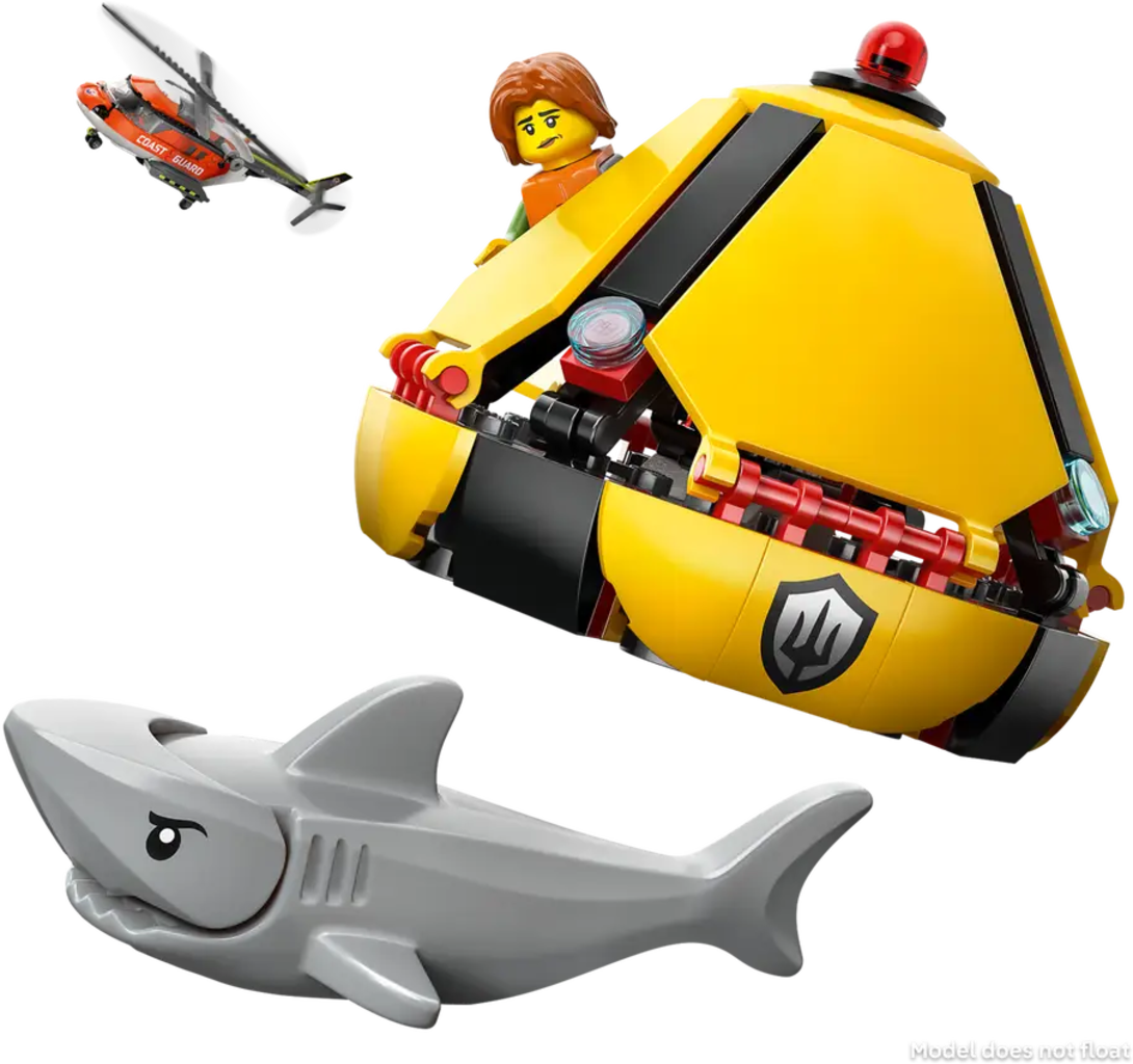 - Incluye cápsula de escape, tiburón y 3 minifiguras con accesorios.