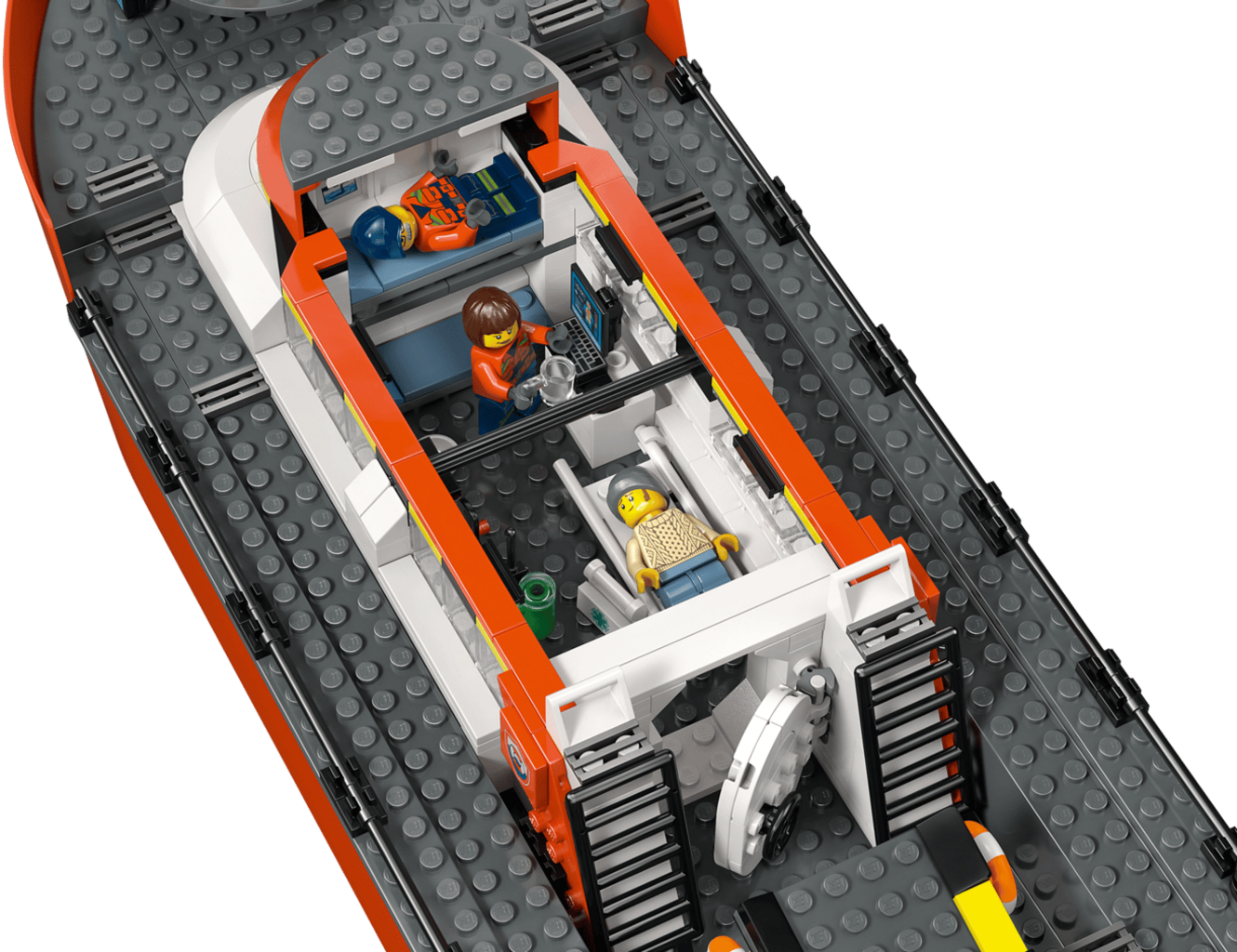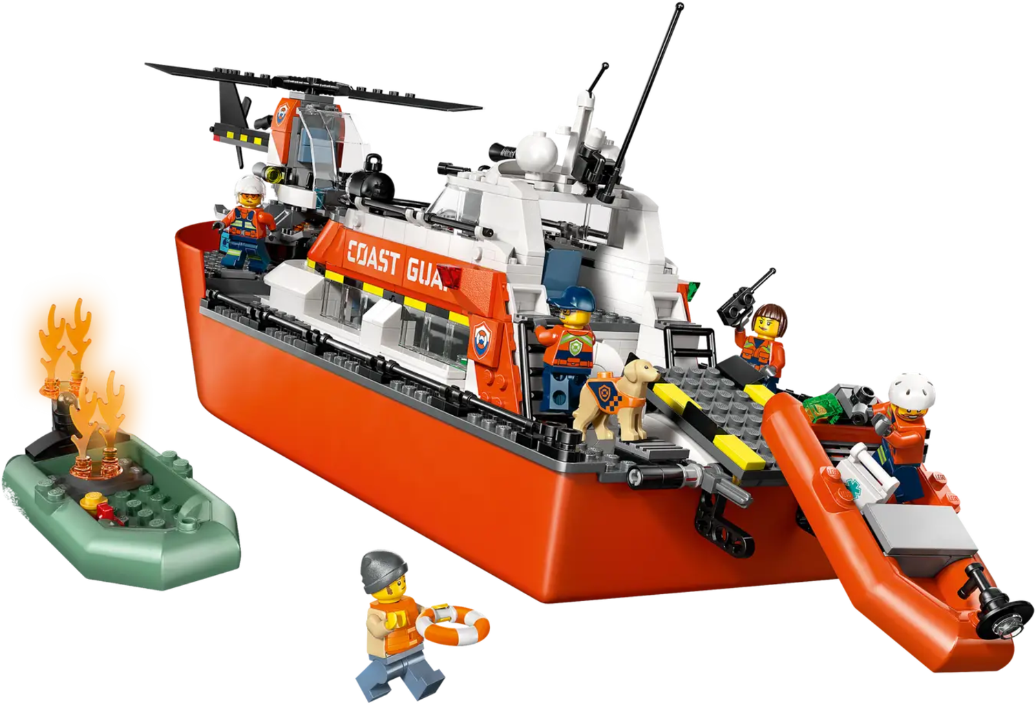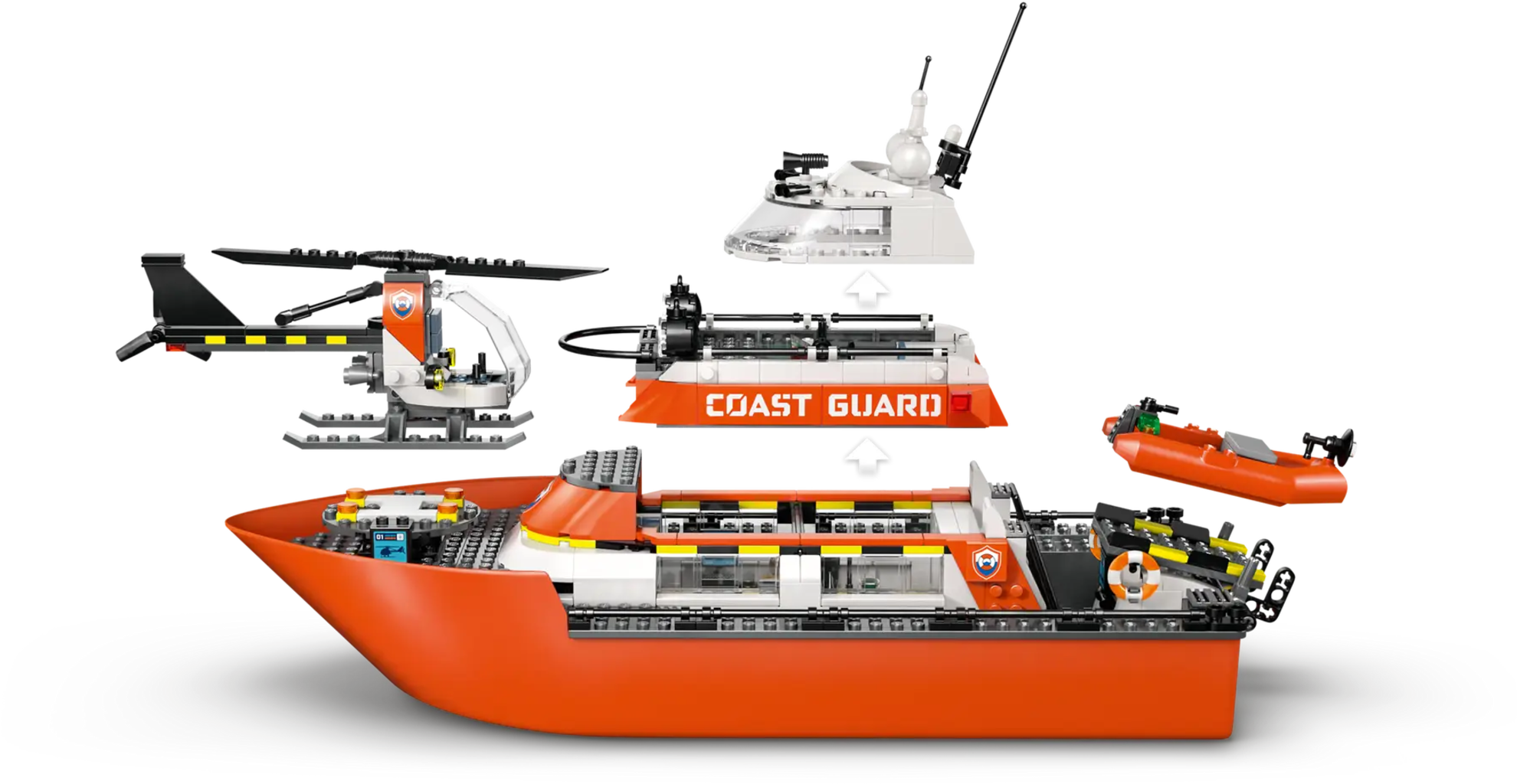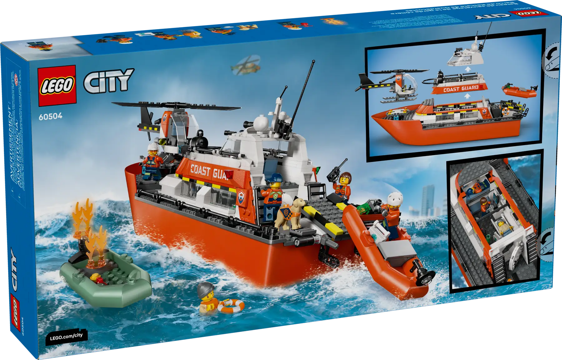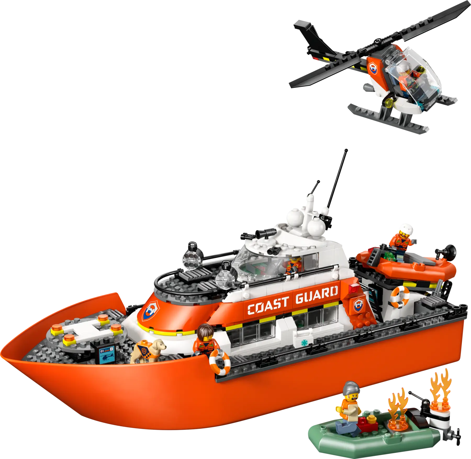 Set LEGO City de barco y helicóptero de rescate de guardacostas para niños a partir de 7 años, con barco principal flotante, helicóptero y botes hinchables para misiones de rescate en el mar. Las cubiertas desmontables y los numerosos accesorios permiten realizar detallados juegos de rol, estimular la imaginación y contar historias.