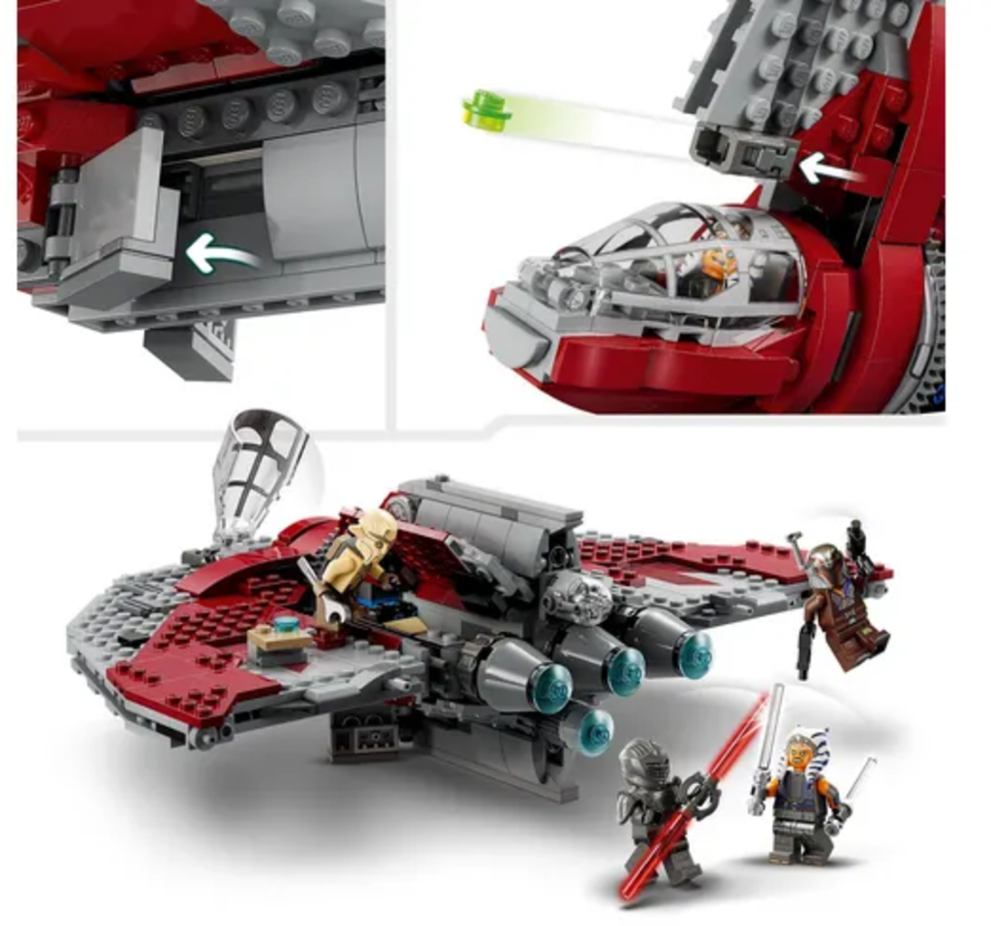¿Listo para nuevas aventuras de acción en el universo Star Wars? Con la lanzadera Jedi T-6 de Ahsoka descubrirás nuevos mundos, participarás en emocionantes persecuciones y competirás en peligrosos duelos. Por supuesto, no pueden faltar Ashoka y sus amigos como fantásticas minifiguras.