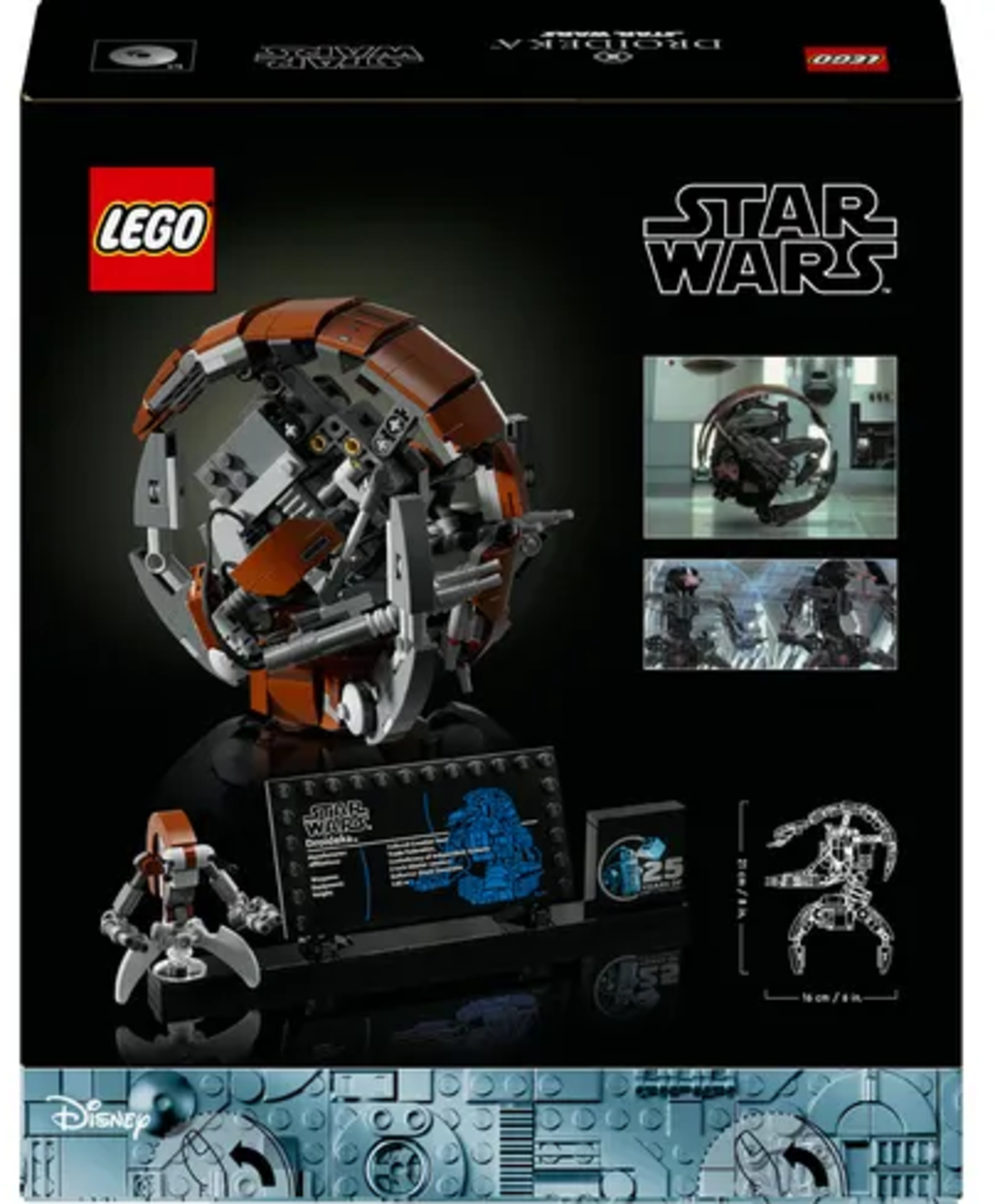 El droide destructor Droideka es un adversario peligroso. Cuando adopta su forma esférica, se mueve y se coloca donde quiere a la velocidad de la luz. Luego se abre a su tamaño completo y dispara con precisión con sus blásters. Este kit se ha creado con motivo del 25º aniversario de LEGO Star Wars y seguro que hará las delicias de los fans.