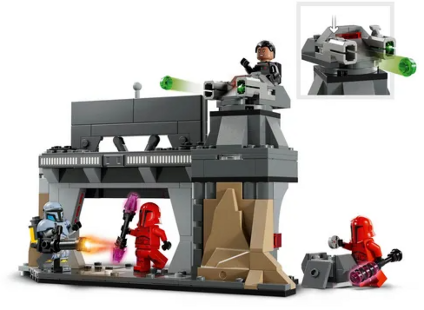 ¡Moff Gideon y la Guardia Pretoriana atacan la base mandaloriana! ¡Rápido, cierra la puerta blindada y activa la torreta! ¿Paz Vizsla podrá repeler el ataque?