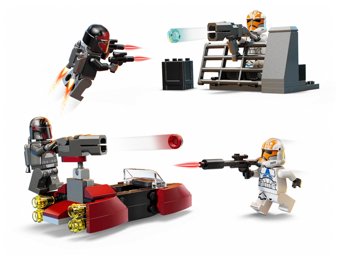 Pack de batalla LEGO Star Wars Asedio de Mandalore para niños a partir de 6 años, con 4 minifiguras, speeder mandaloriano y barricada de disparo. El set incluye accesorios y figuras de acción para recrear épicas batallas inspiradas en Star Wars The Clone Wars, estimulando el juego de rol y la imaginación.