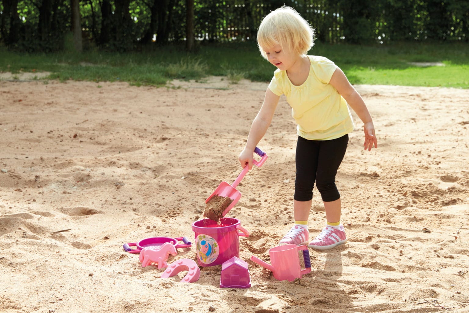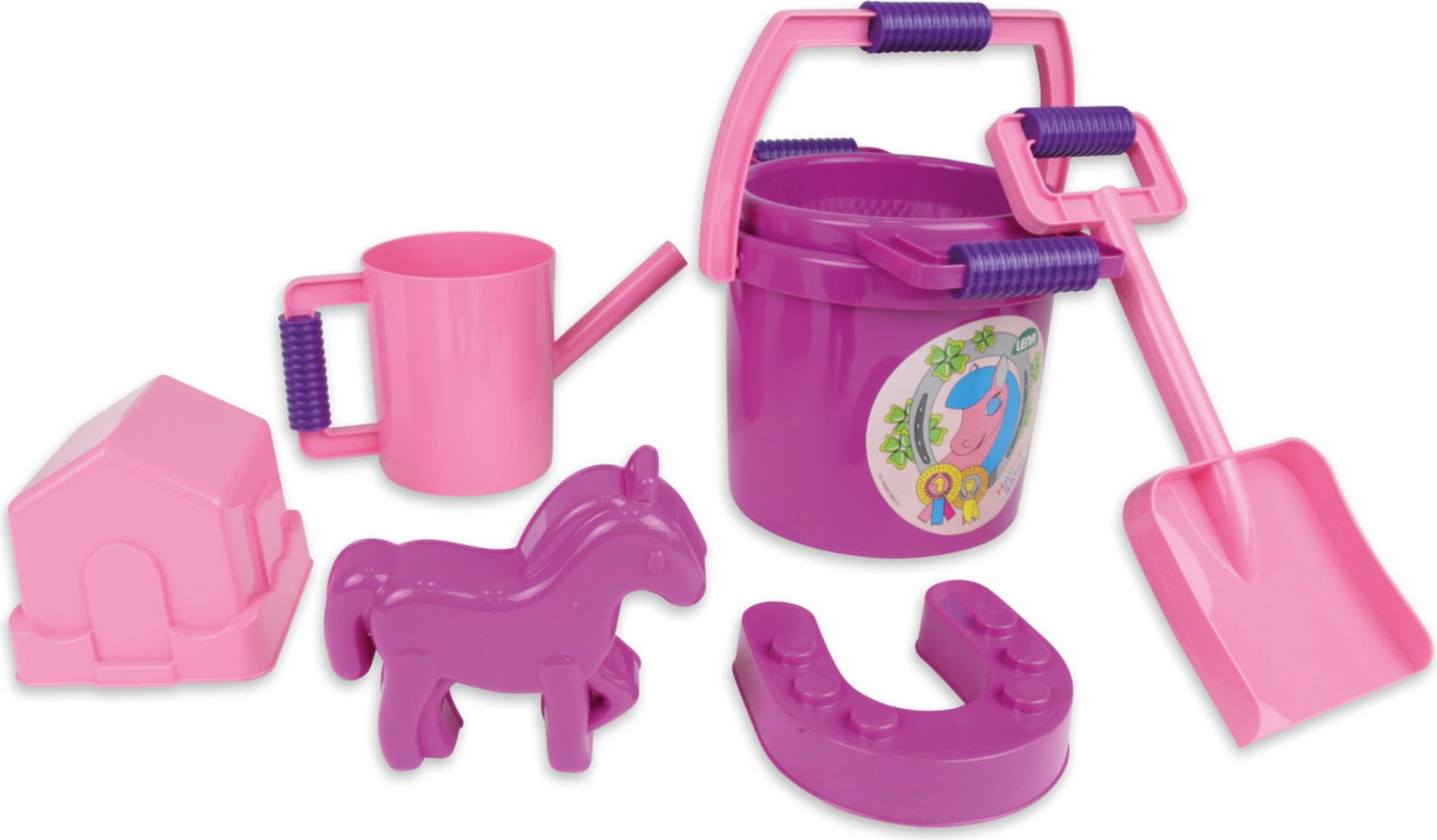 Este set aporta un soplo de aire fresco al arenero. Con los ingeniosos moldes se puede hacer un caballo, una herradura y un mini establo, que se pueden decorar de forma imaginativa con piedrecitas, ramas u otros materiales naturales.