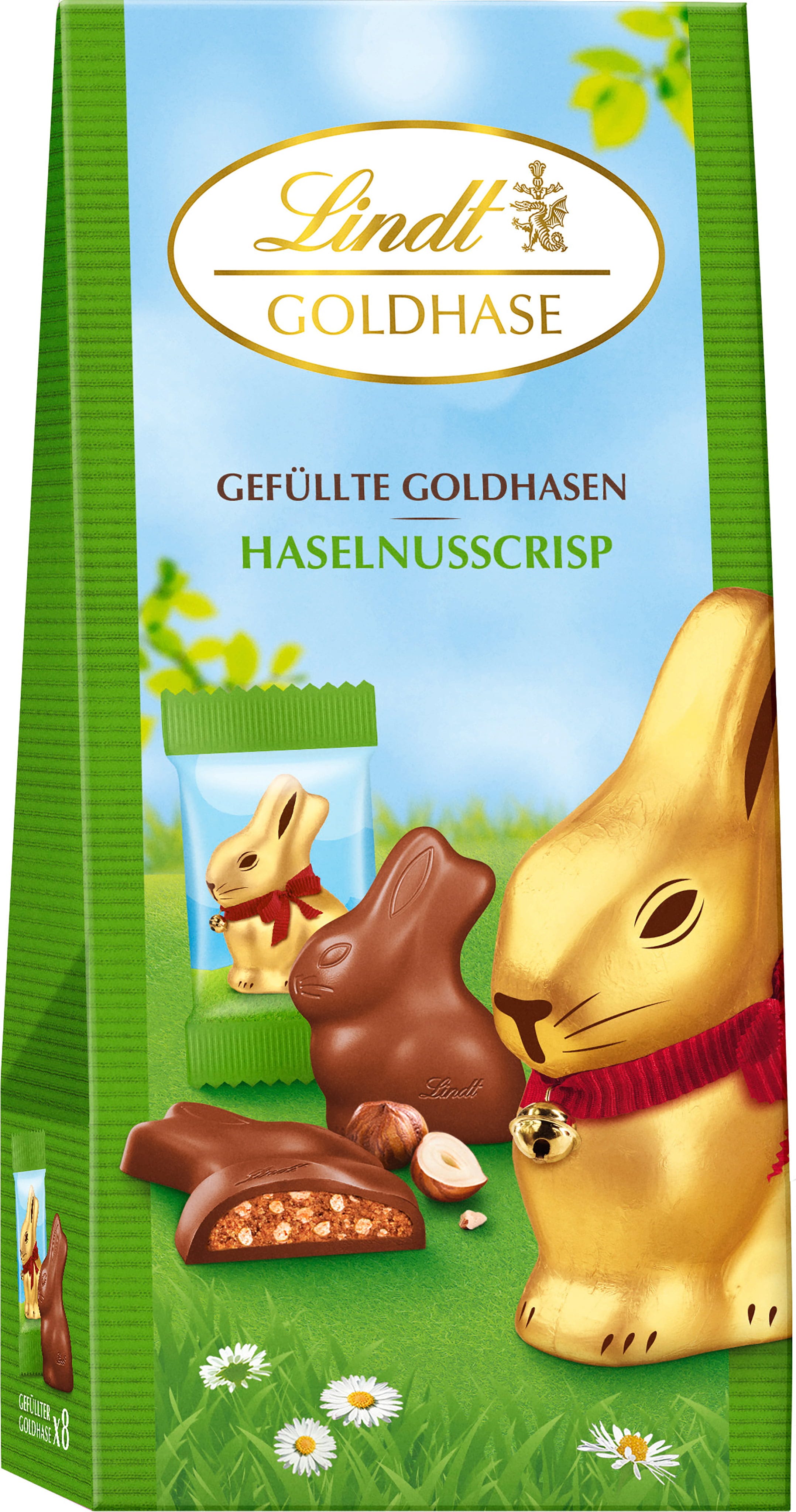 Descubre el famoso Conejito de Oro de Lindt desde una perspectiva completamente nueva y rellena de avellanas. Aquí no sólo saborearás el clásico chocolate con leche alpino, sino una auténtica aventura de texturas con un aterciopelado relleno de crema de avellanas. Los trocitos crujientes incrustados ofrecen el crujido perfecto en cada bocado, armonizando a la perfección con el suave relleno.