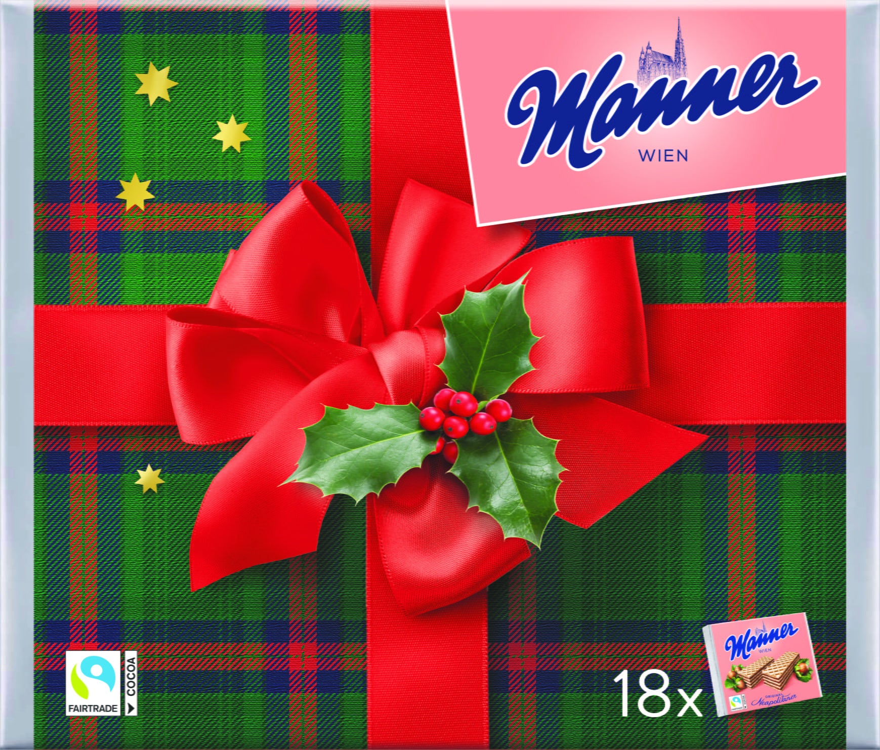Estos barquillos son un dulce típico austriaco, adorado por grande sy pequeños. La fina crema de avellanas hacen de este placer incomparable algo que casi nadie puede resistir. Esta gran edición de Navidad deleita con su diseño festivo y 18 paquetes de deliciosos barquillos.