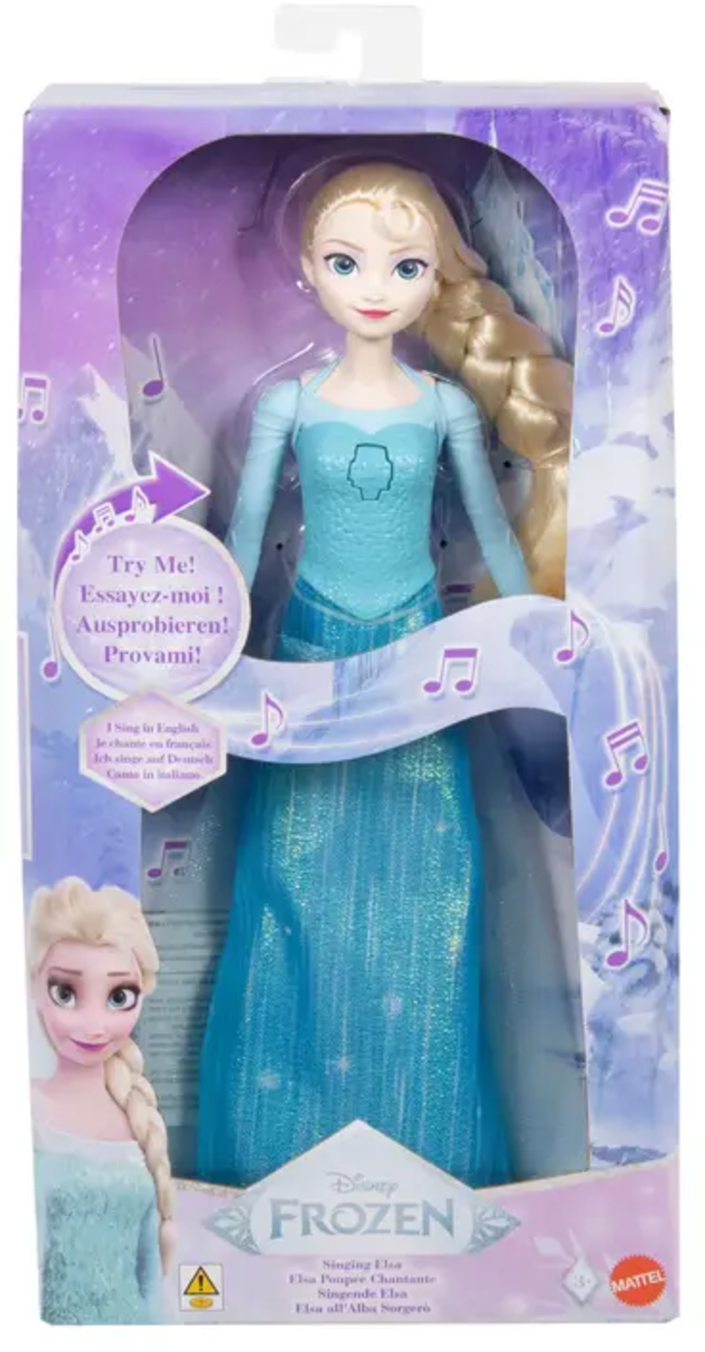 Con la muñeca Elsa cantarina, la magia de Frozen llega directamente a la habitación de los niños. Los niños pueden cantar la famosa canción Al amanecer me levantaré en cuatro idiomas, peinar a la muñeca y vivir imaginativas aventuras junto a Elsa.