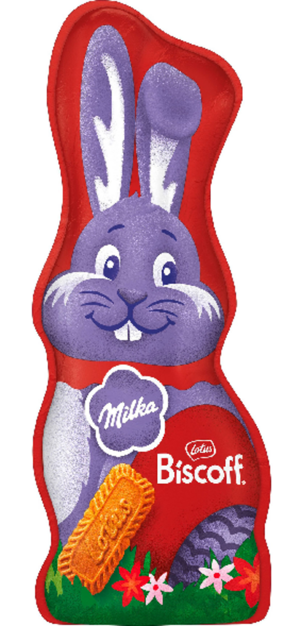 The Smiling Bunny - Biscoff combina el clásico chocolate con leche Milka con crujientes trocitos de galleta Lotus Biscoff, dando como resultado una golosina especialmente aromática. La nota ligeramente caramelizada de los trozos de galleta armoniza perfectamente con el dulzor del chocolate para ofrecer una experiencia gustativa deliciosa y variada. Ya sea como pequeño regalo o para uno mismo, este conejito de chocolate añade un toque alegre a las fiestas de Pascua.