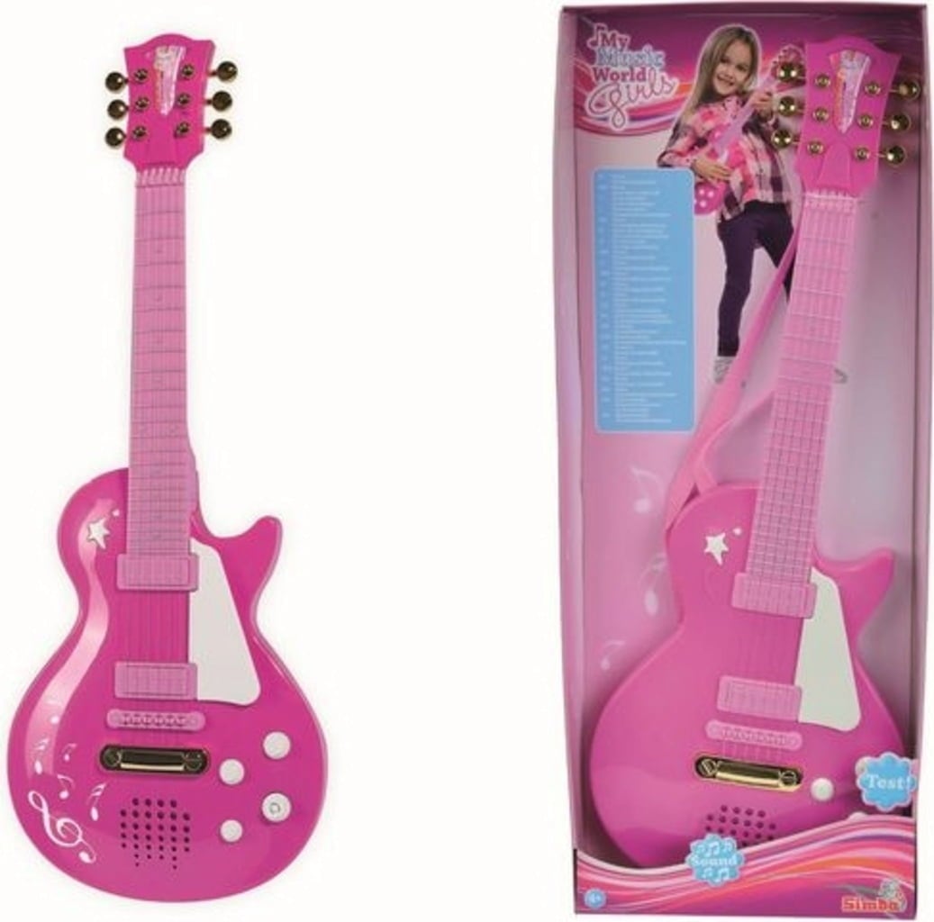 ¡Convierte la habitación de tus hijos en un gran escenario! Con esta guitarra se convertirán en auténticas estrellas del rock. Tiene seis cuerdas metálicas y un amplificador incorporado que funciona con las dos pilas LR06 de 1,5 V incluidas.