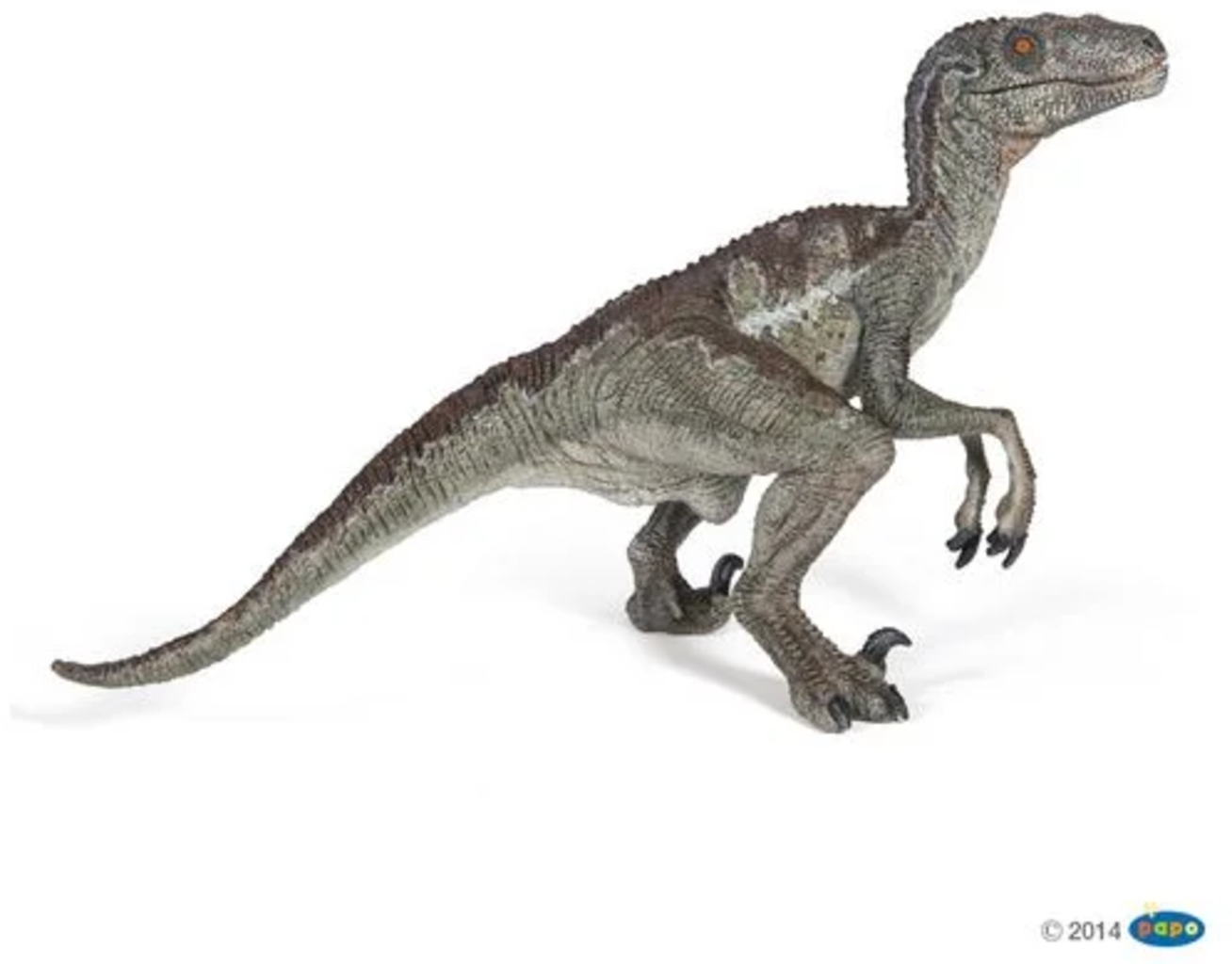 Este ejemplar de velociraptor está esperando a alguien del mundo de los dinosaurios con quien entablar amistad.