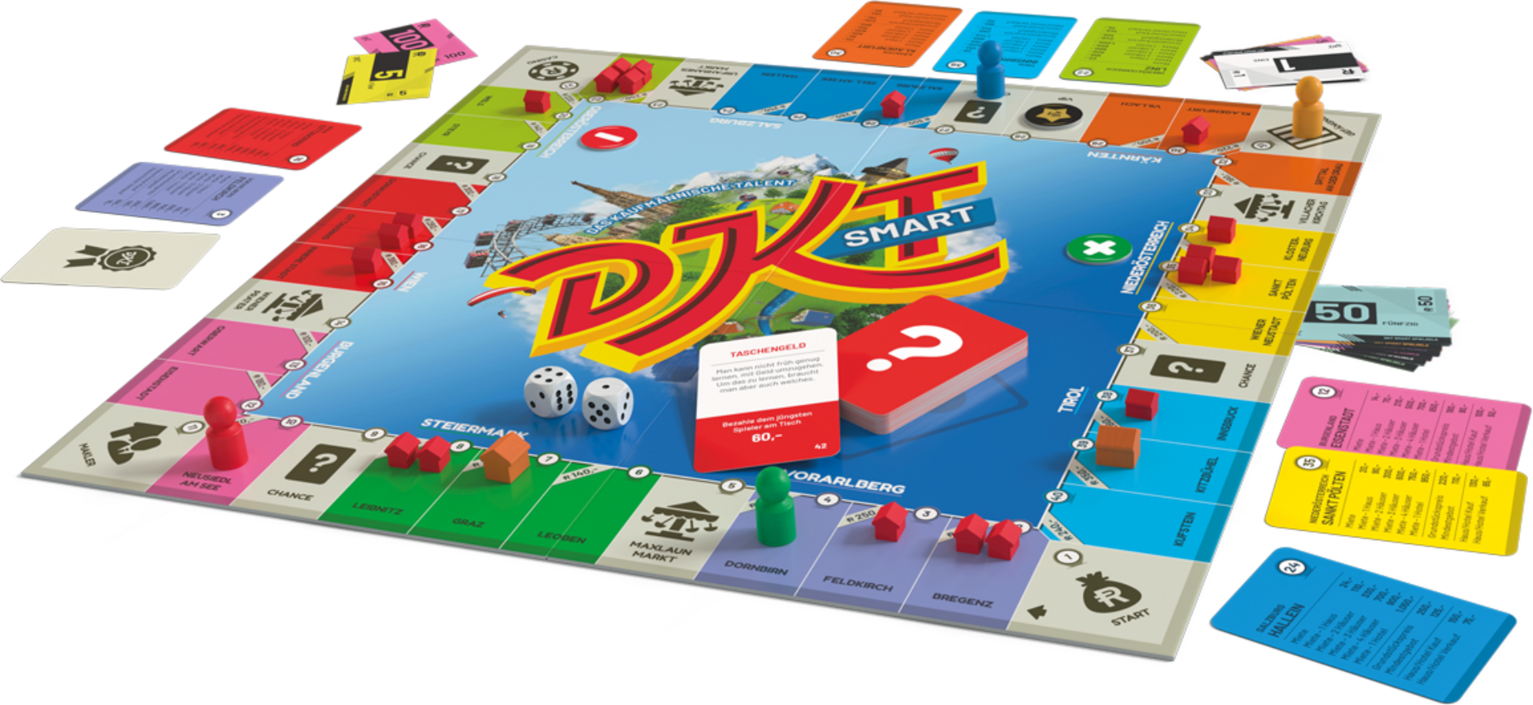Compra, construye y colecciona: este es el principio tradicional de DKT, el popular juego de mesa. Con DKT Smart, puedes demostrar tus habilidades de negociación. Emocionantes subastas y minijuegos espontáneos activados por la app te guiarán a través del juego, ambientado en las ciudades más bellas de Austria. Este juego requiere suerte y buena estrategia. La jugabilidad optimizada es apta para dos o más jugadores. Ideal para sesiones de juego espontáneas y reuniones sociales.