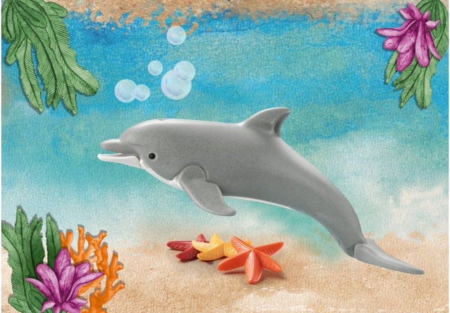 Contenido: delfín, 3 estrellas de mar, tarjeta de información.
