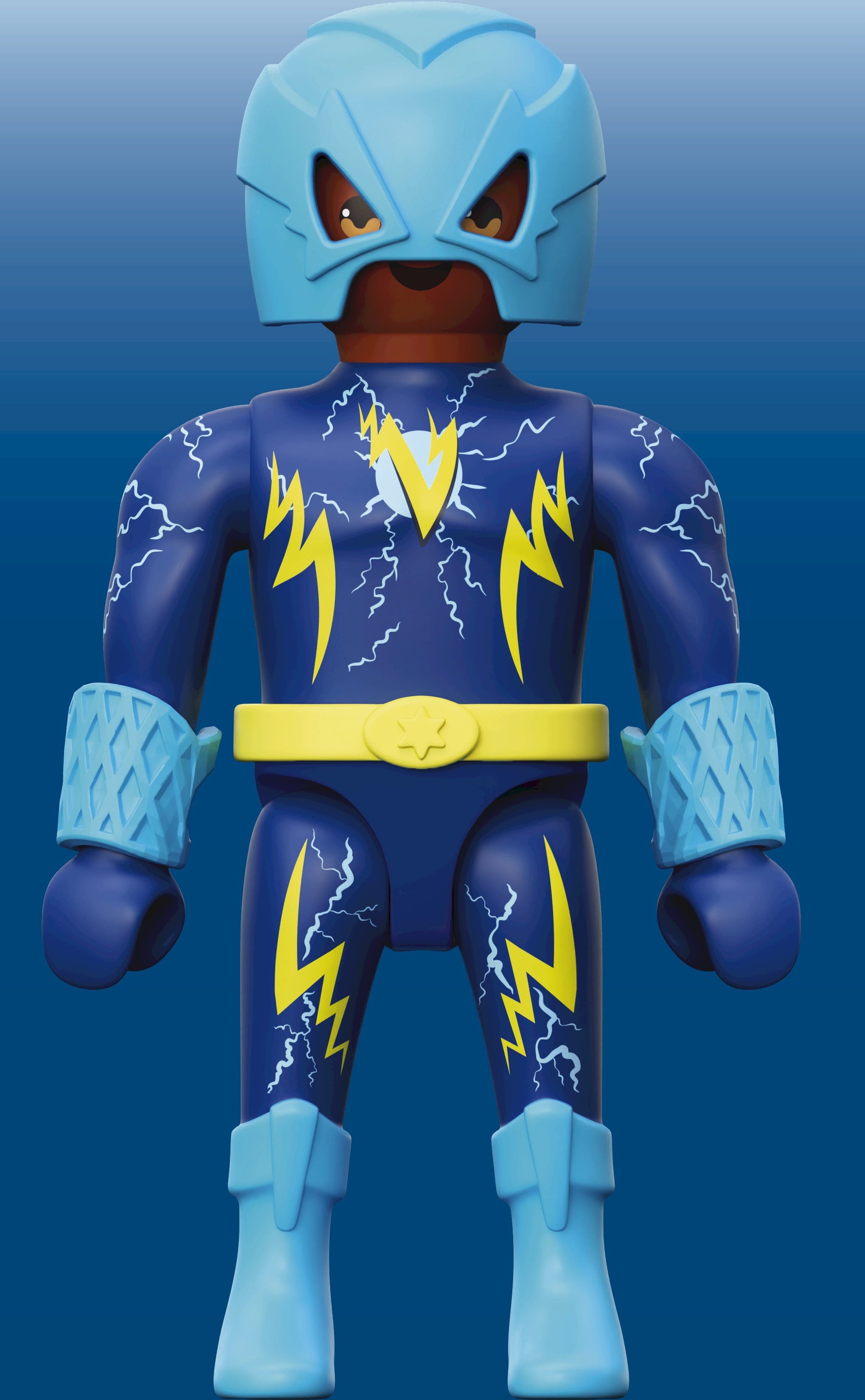 ¡El rayo le sigue a todas partes! El Héroe del Rayo canaliza energía en su lanza eléctrica para defender PLAYMOPOLIS, protegido por su escudo cargado. Con máscara y accesorios intercambiables, este personaje PLAYMOBIL es perfecto para aventuras llenas de acción.