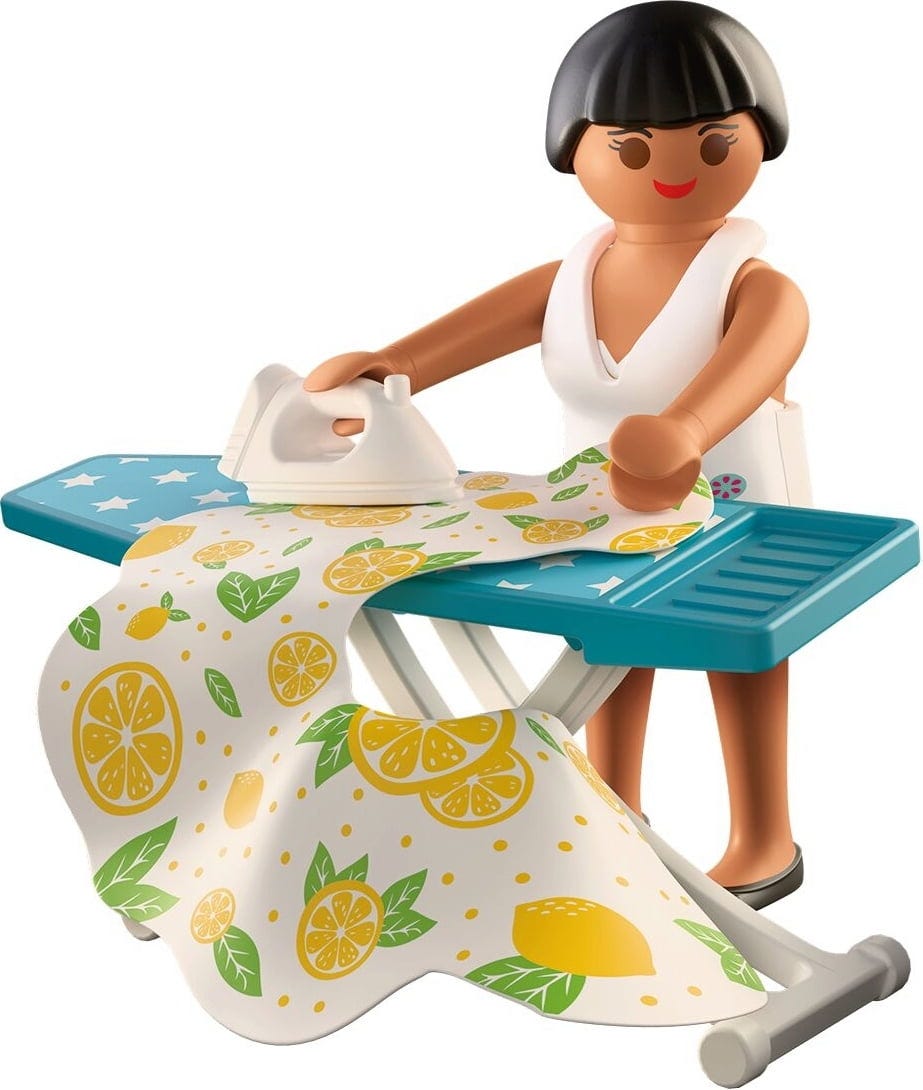 Contenido: 1 mujer, 1 falda de silicona, 1 vestido, 1 tabla de planchar, 1 plancha, 1 caja de bombones