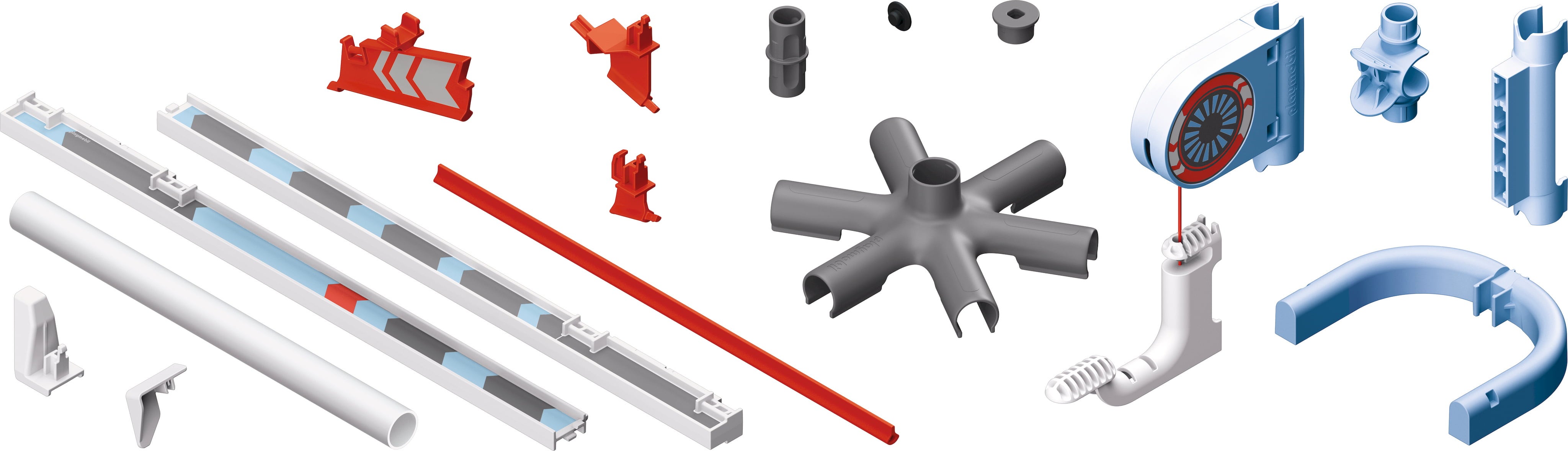 Contenido: 1 Air Lift, 1 soporte, 8 tubos y conectores de tubo, 1 tapón de tubo, 2 abrazaderas, 2 raíles