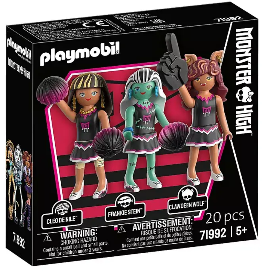 Este set trae el inconfundible espíritu Monster High al universo PLAYMOBIL. Clawdeen, Cleo y Frankie brillan con sus detallados trajes de animadoras, aportando estilo, espíritu de equipo y un ambiente espeluznante. Perfecto para jugar, coleccionar o regalar, este set es imprescindible para los fans de Monster High de todas las edades.