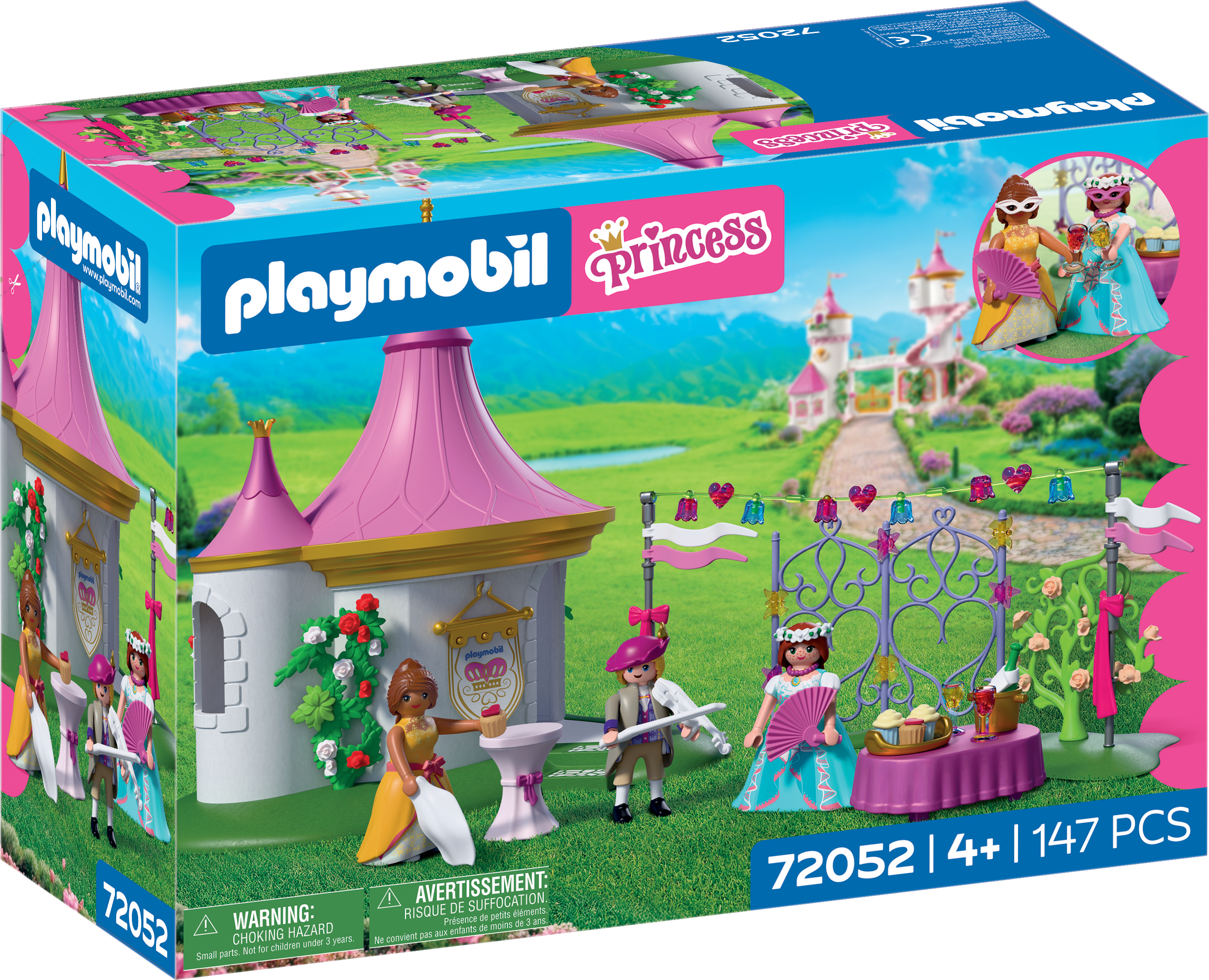 ¡Celebra un día de cuento de hadas en los jardines del castillo con el Baile de Máscaras PLAYMOBIL! Dos amigas princesas disfrutan de la música, el baile y las golosinas festivas, mientras un joven invitado de la corte con un violín crea el ambiente perfecto. Guirnaldas, banderas y accesorios brillantes dan vida a la escena, y las faldas desmontables permiten dar elegantes pasos de baile.