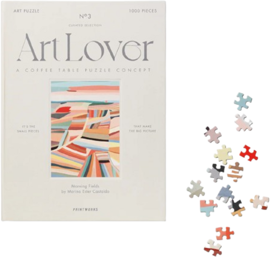 Con el puzzle «Morning Fields» de la serie Art Lover, te llevarás a casa una combinación de ligereza solar y profundidad artística. La artista napolitana Marina Ester Castaldo crea formas abstractas que despiertan emociones y evocan la cálida acogida del sur de Italia. Pieza a pieza, se forma una obra de arte teñida que seguro que no querrás volver a guardar en la caja.