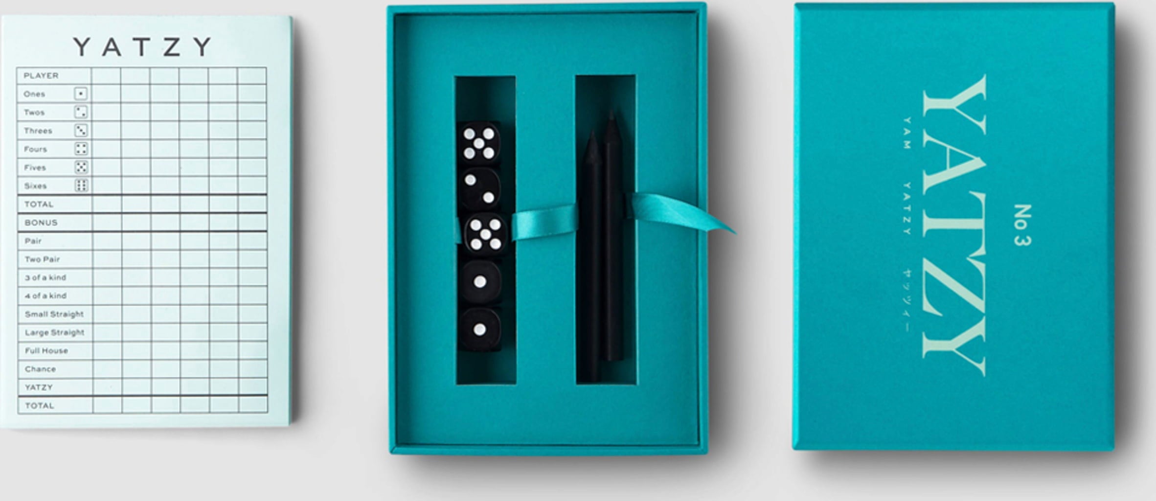 La marca sueca Printworks ha renovado un gran clásico de los juegos de mesa. Yatzy implica el uso de 5 dados y es un juego de estrategia diseñado para hasta 6 jugadores.