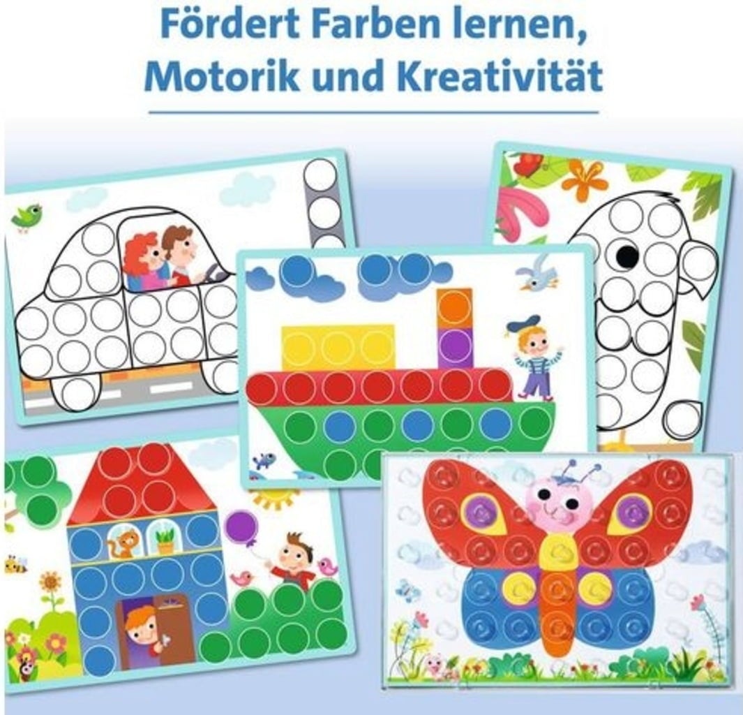 Juego colorido y divertido para niños a partir de 2 años. Después de elegir una de las 12 tarjetas de colores y colocarla en el tablero transparente, puedes empezar a emparejar los botones de colores.