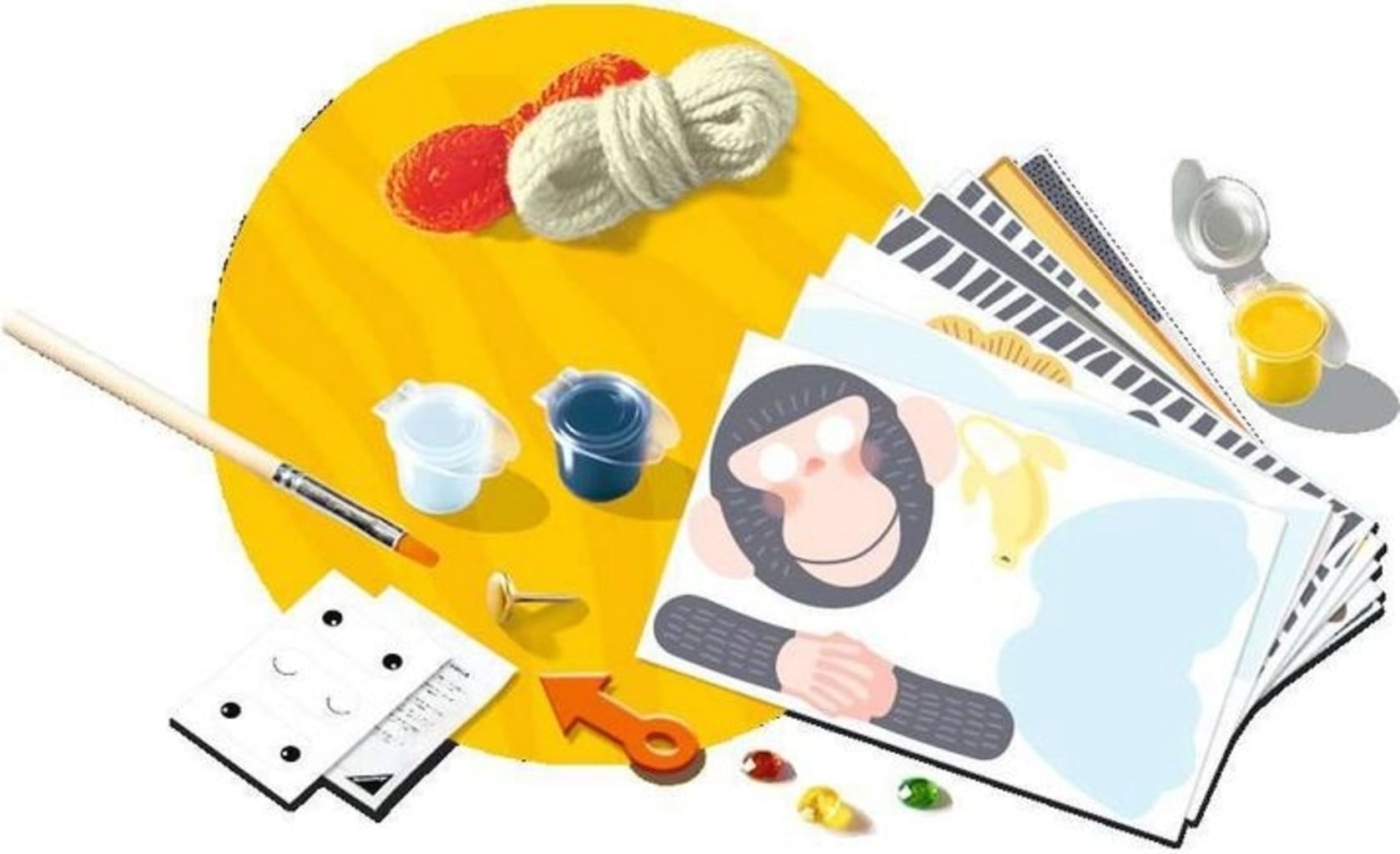 Contenido: instrucciones, hojas recortables, piedras preciosas, agujas de reloj, hilo, botes de pintura, hojas de pegatinas, pinceles, pegamento para manualidades, clips.