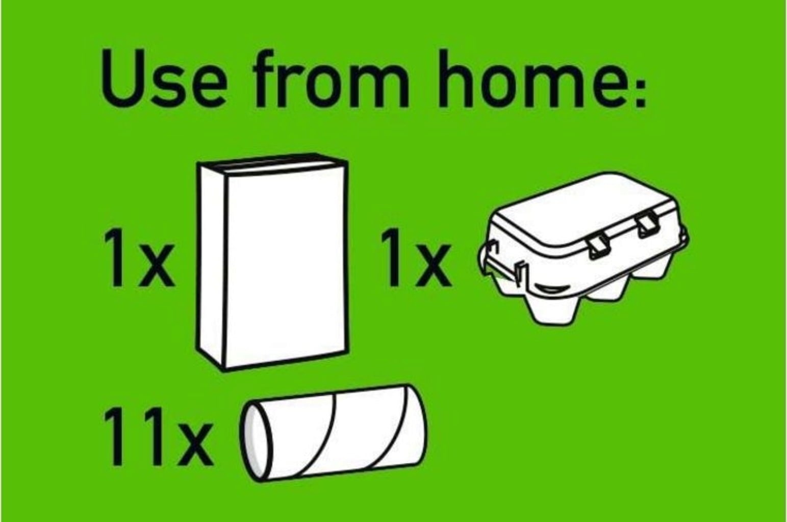También se necesita: un pequeño cartón de huevos, una caja de cereales, once rollos de papel higiénico.