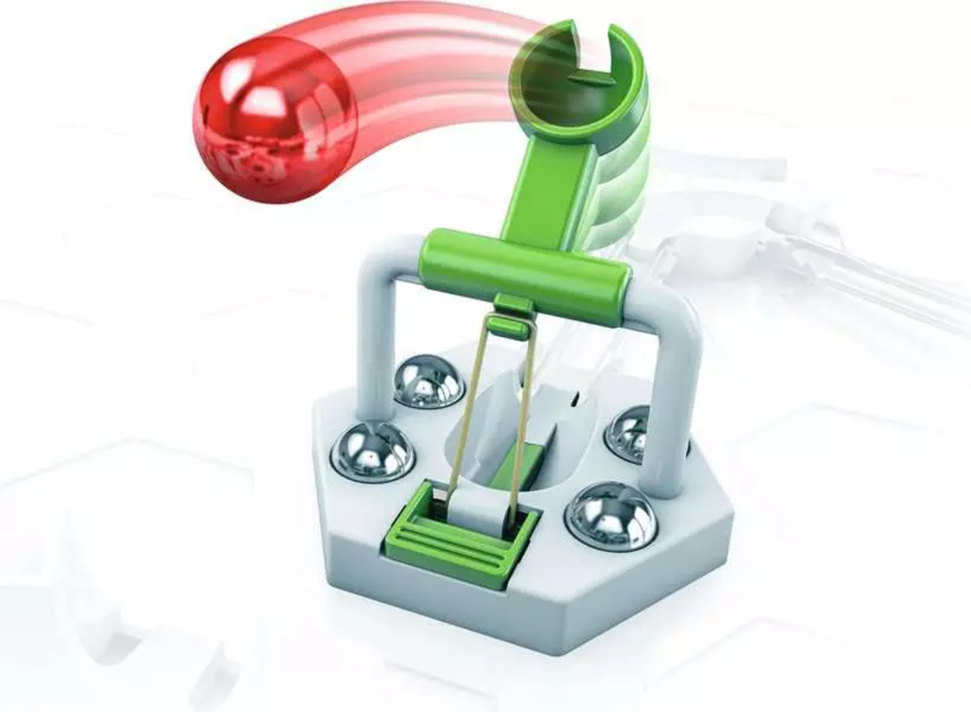 ¡Mejora tu circuito de canicas! Con la Catapulta BASE GraviTrax, puedes desafiar la gravedad por un momento y lanzar tus canicas por los aires. Este elemento de acción es el complemento perfecto para constructores creativos que buscan una forma espectacular de cubrir largas distancias o desniveles considerables.