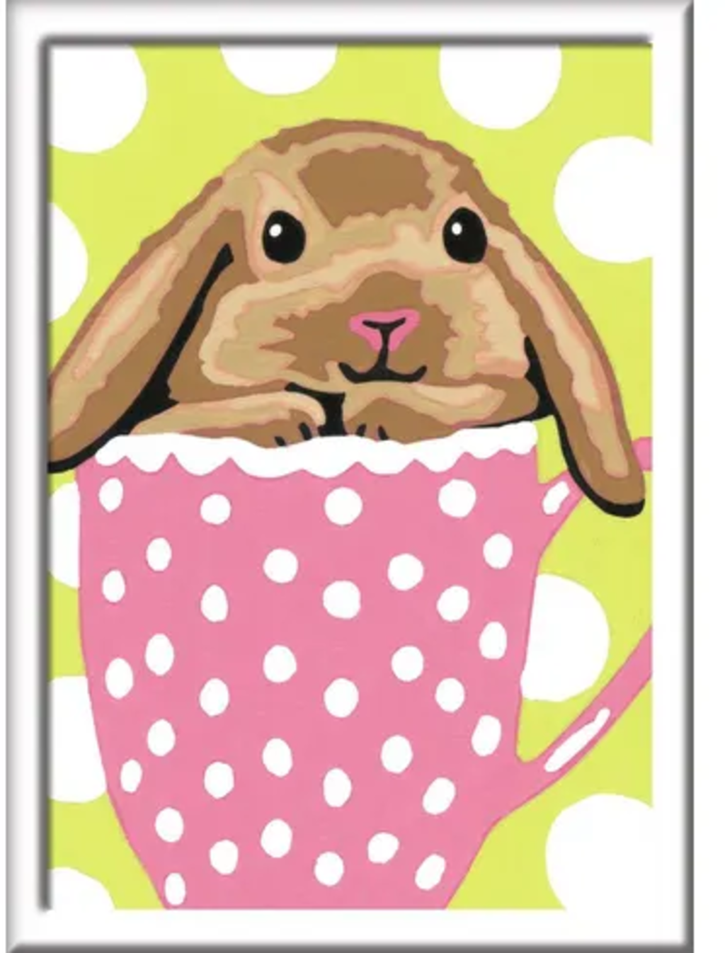 Paso a paso, los colores darán vida a este simpático dibujo de un conejito en una taza de té. El marco incluido da el toque final a la obra.