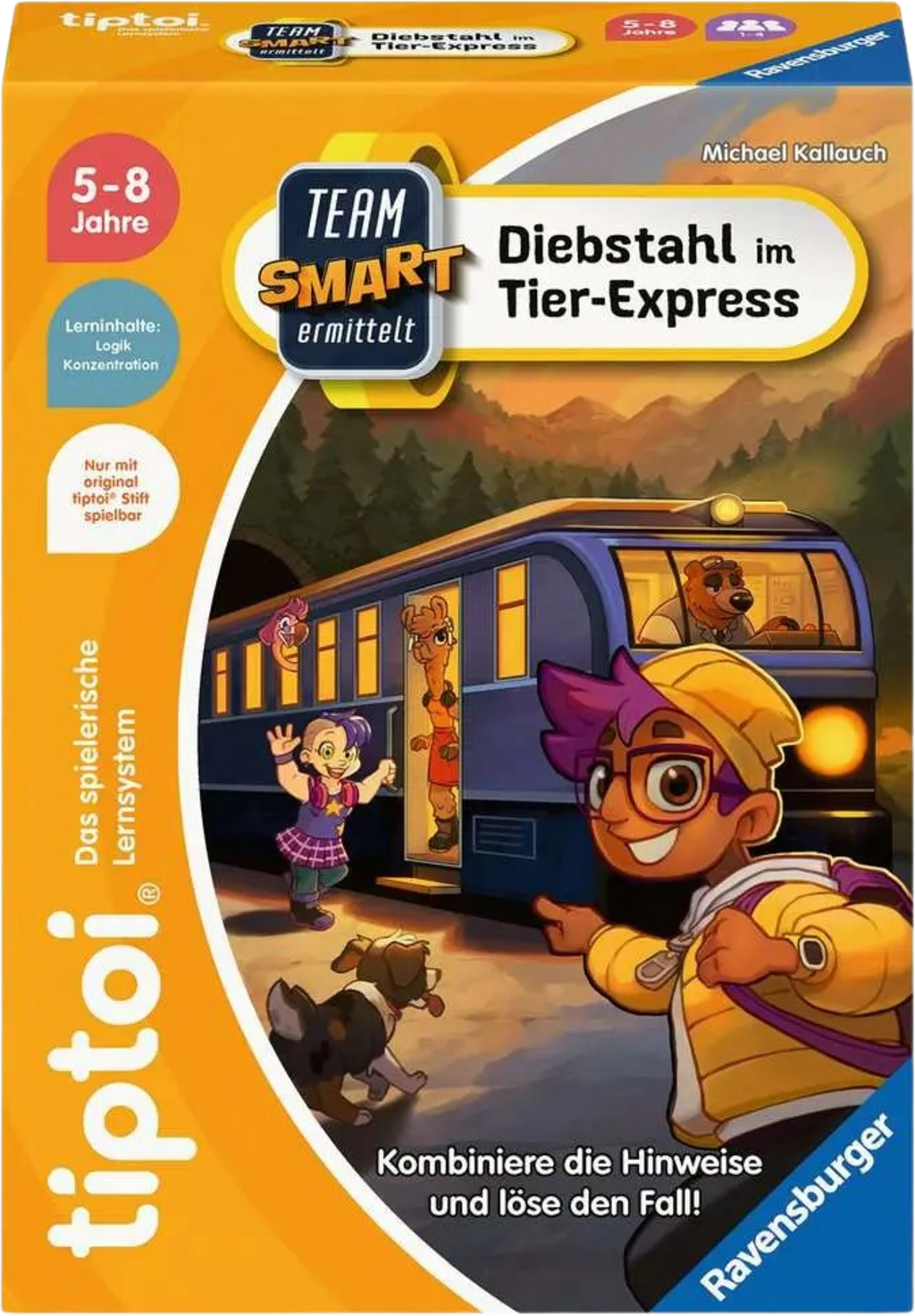 Este juego cooperativo de detectives con tiptoi® hace que los niños mayores de 5 años ayuden al Equipo SMART a resolver un robo en el trepidante Animal Express.