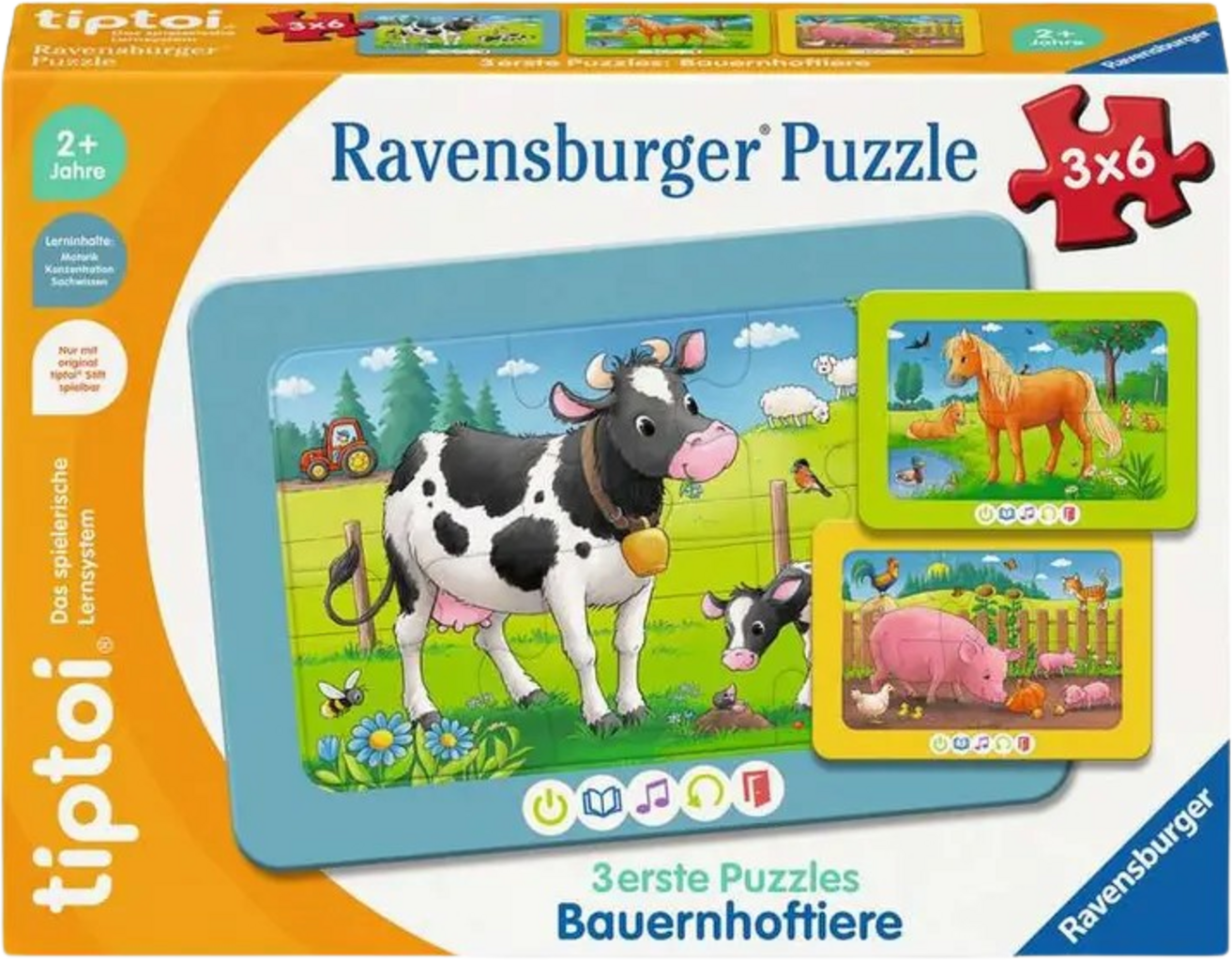 Este juego de puzzles tiptoi® es la introducción ideal al mundo tiptoi® y da vida a tres entrañables motivos de granja de forma interactiva para niños a partir de 2 años.