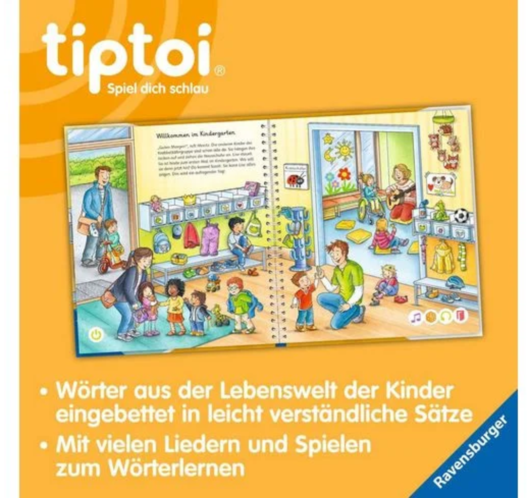 Este tiptoi Starter Set es la actividad recreativa ideal para los niños. El libro ilustrado de kindergarten no sólo es divertido de hojear, sino también educativo. El archivo de audio necesario está preinstalado en el bolígrafo ya cargado y la batería está integrada. Una forma lúdica estupenda de ampliar el vocabulario y consolidar los conocimientos sobre la vida cotidiana en el jardín de infancia.
