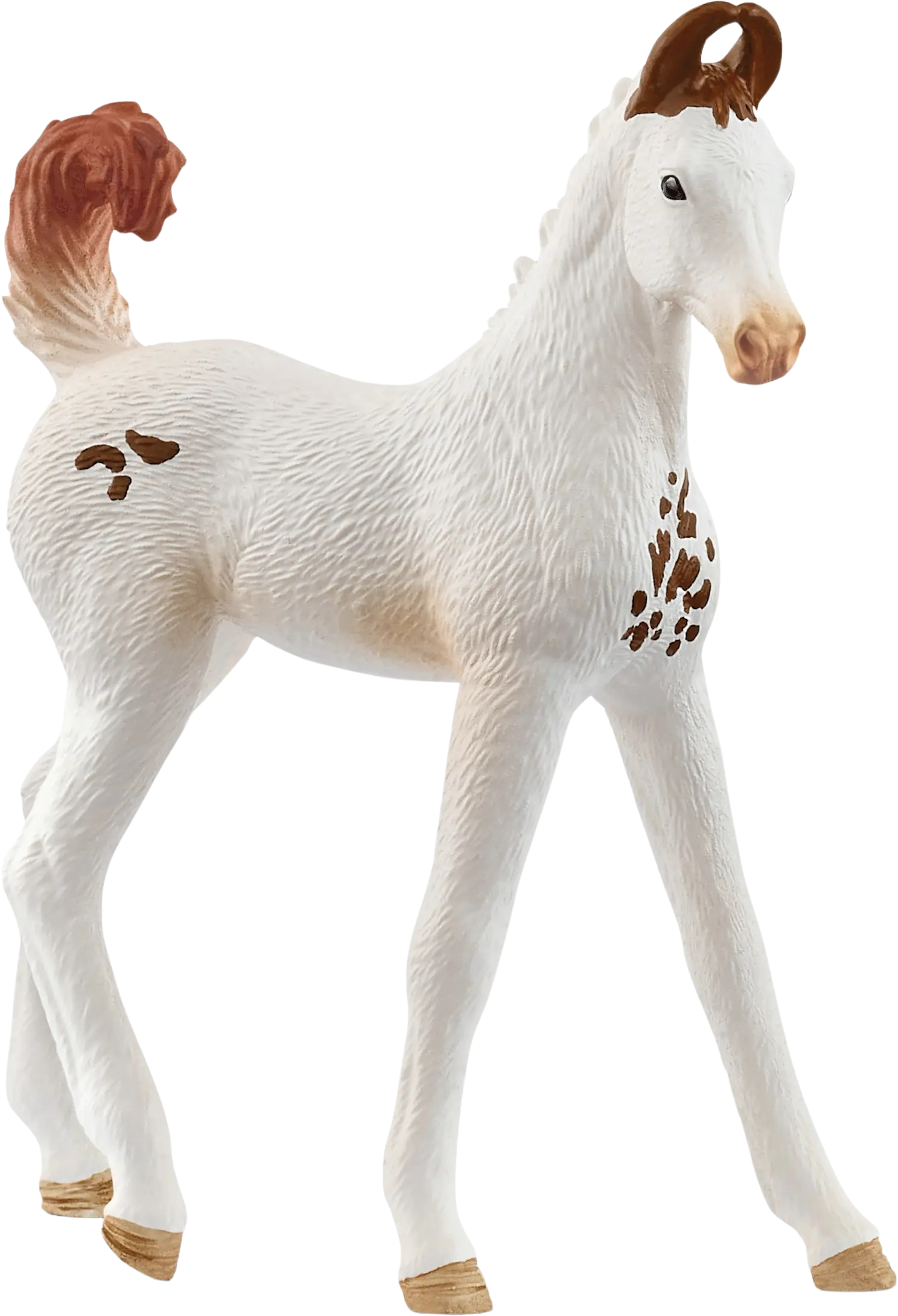 El potro Marwari de la India impresiona con sus características orejas curvadas hacia dentro y su bonito pelaje color pied. Los niños pueden vivir emocionantes aventuras con él, jugar a entrenarlo o formar su propia familia de caballos. Junto con la yegua y el semental a juego, el potro Marwari se convierte en una animada estrella en cualquier mundo de juego.
