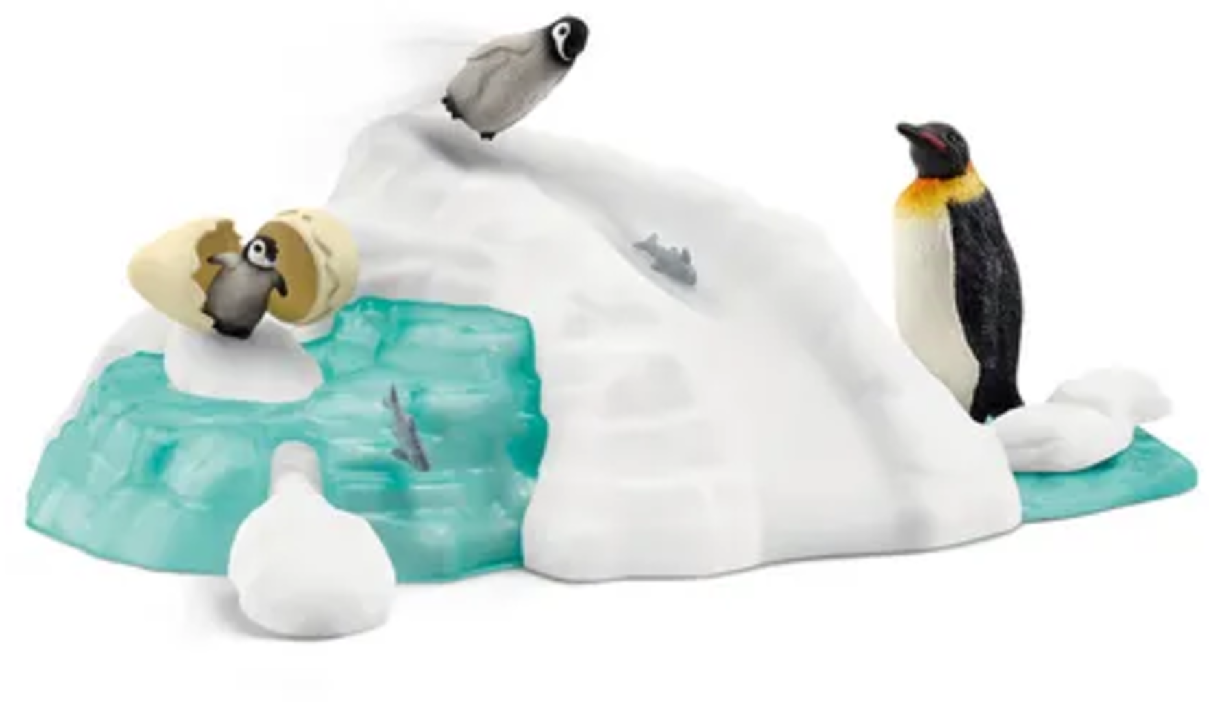 Un iceberg hecho a medida para las crías de pingüino. Mientras mamá pingüino vigila siempre a sus crías, éstas corren enérgicamente arriba y abajo por su territorio divirtiéndose en el tobogán de hielo. Un conjunto con fantásticos detalles para una diversión sin fin.