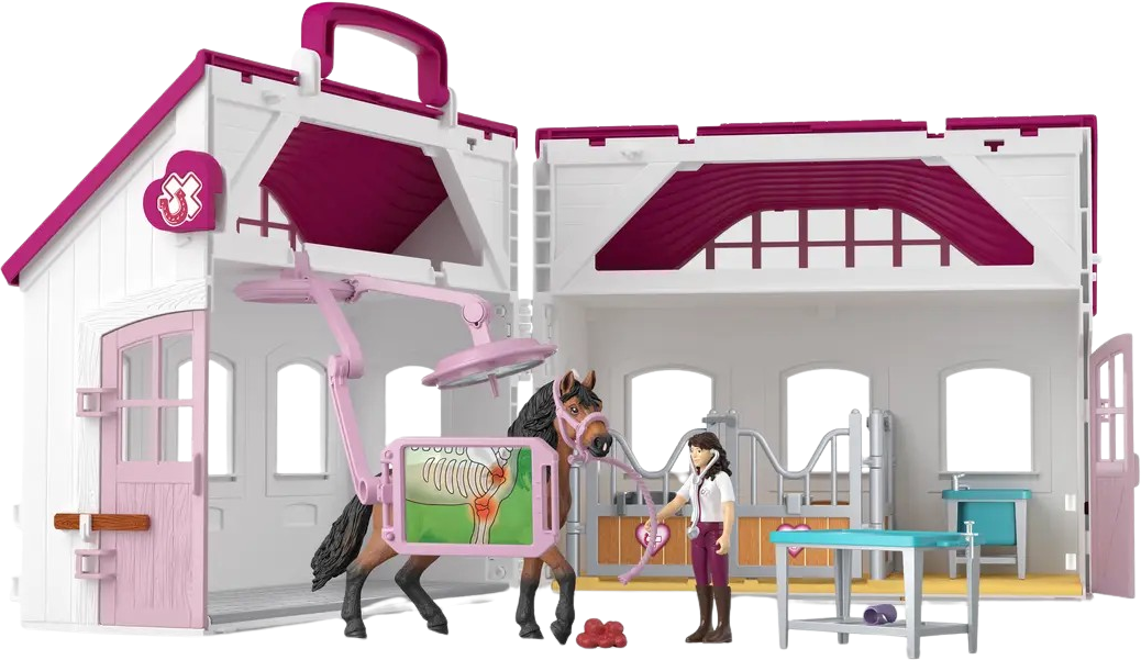 - Diversión interactiva: las piezas móviles y un set totalmente equipado te permiten sumergirte en el mundo de la clínica equina.