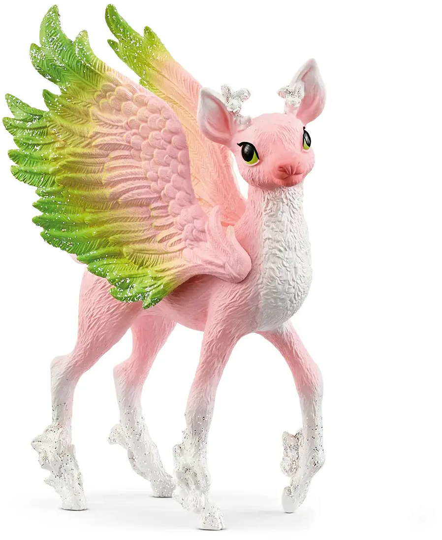 La simpática cría de ciervo mágico de BAYALA® te encantará con su pelaje rosa, sus patas blancas y brillantes y sus grandes y delicadas alas. Con su pequeña cornamenta y sus ojos brillantes, explora curioso el bosque y practica juguetón el vuelo. Un compañero perfecto para vivir aventuras mágicas y divertirse coleccionando.