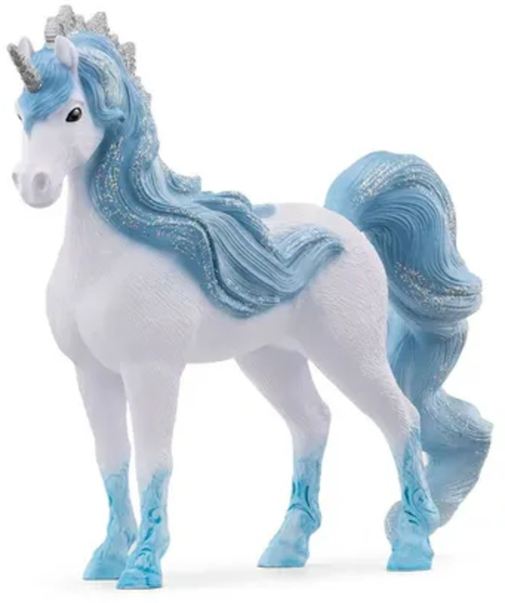 Como criatura hecha de hielo y nieve, el unicornio Flowy galopa por el magnífico paisaje invernal de Bayala. Con sus poderes mágicos puede controlar el agua.