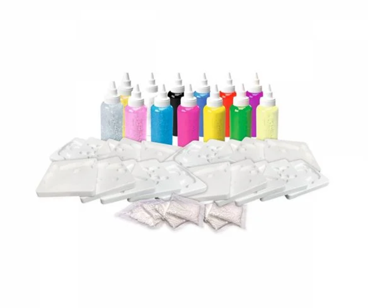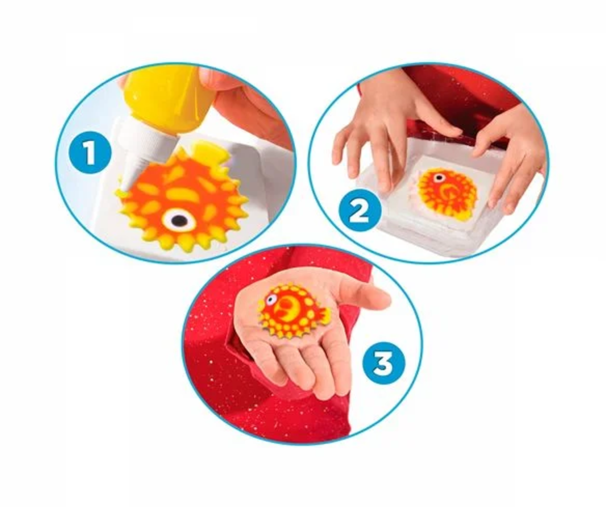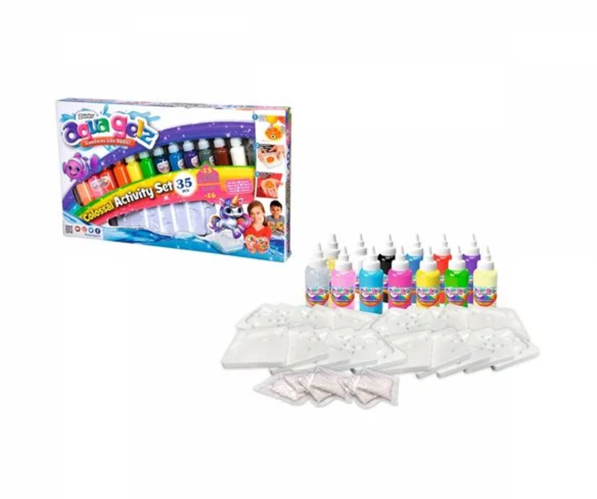 Con este set no hay límites para la diversión del bricolaje. Sólo tienes que elegir los geles de colores, verterlos en los moldes y sumergirlos brevemente en un recipiente con agua. Así podrás crear bonitas y coloridas figuras para regalar a tus amigos. Además de ser divertido, el set también entrena la motricidad fina.