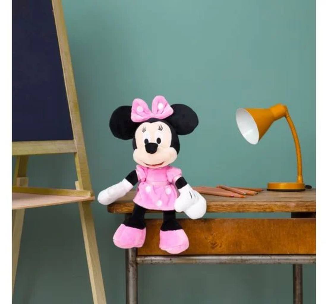 Minnie siempre está dispuesta a jugar o a que la abracen. La simpática ratoncita tiene un bonito lazo rosa en la cabeza y lleva unas lindas bailarinas. Con Minnie, podrás inventar muchas historias.