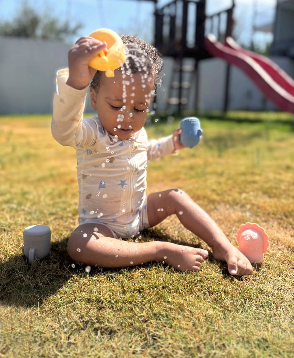 Los alegres animales de la selva aseguran una diversión variada en el baño. Con su función de chorro, texturas suaves y un diseño seguro, los niños descubren el agua jugando, mientras entrenan la coordinación mano-ojo y la motricidad fina: una gran aventura para cada momento del baño.