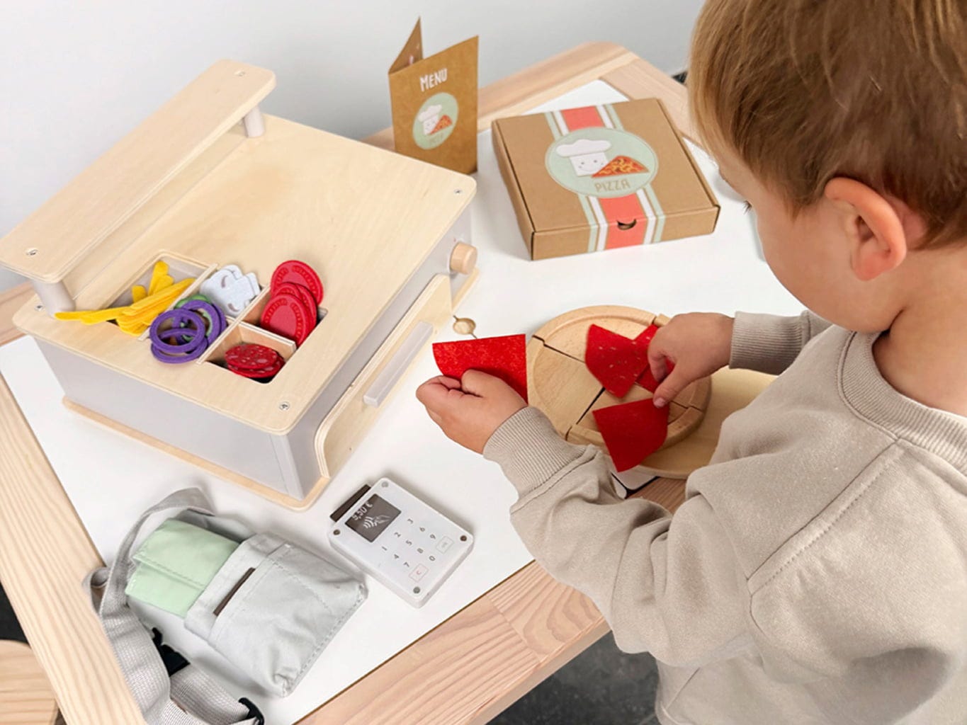 Con el set de pizzería, los niños pueden convertirse en pequeños pizzeros y camareros. El horno de pizza diseñado con esmero, los ingredientes reversibles y los prácticos accesorios invitan al juego imaginativo y fomentan de forma lúdica las habilidades motoras y las competencias sociales. Ideal para recrear la experiencia de un restaurante en casa.