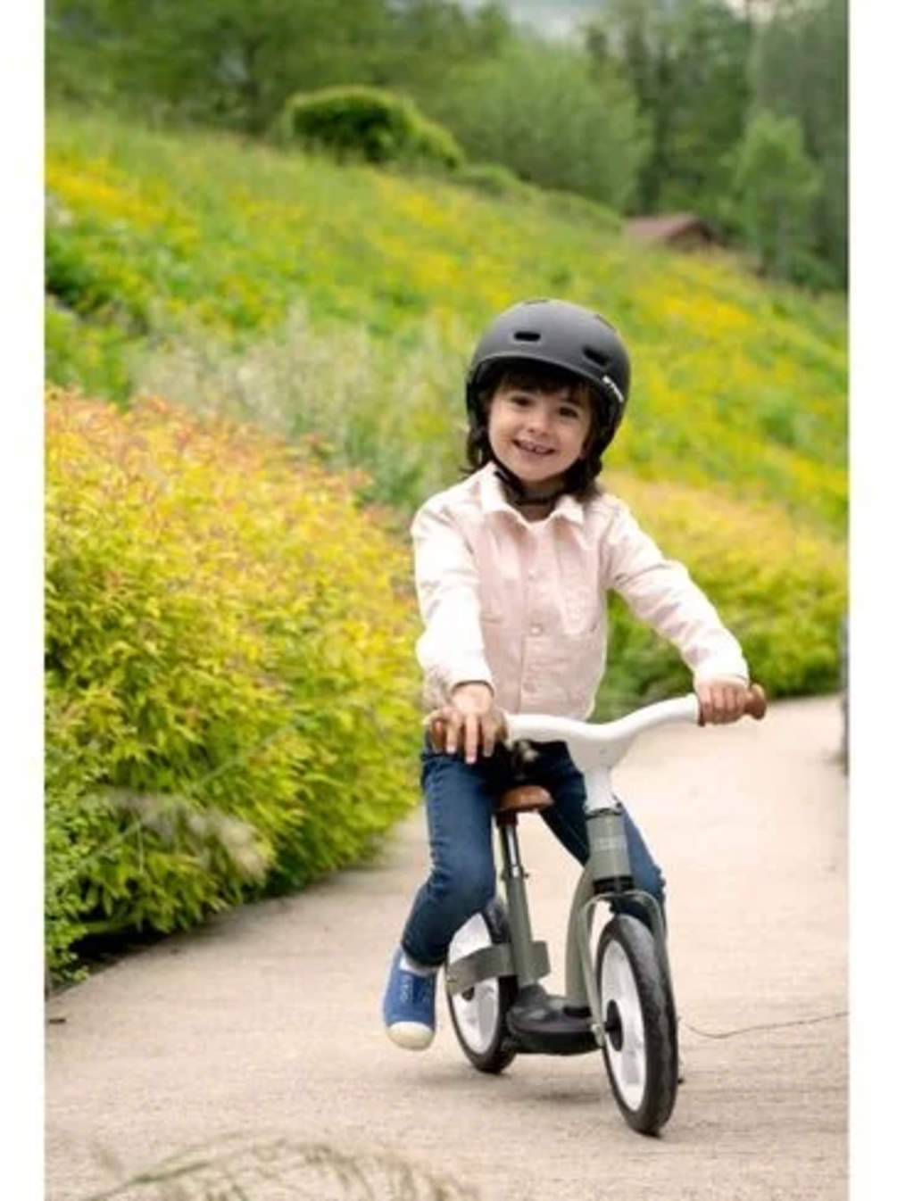 La bicicleta es especialmente ligera y robusta y permite una conducción segura. El ángulo de giro está limitado a 30° y las ruedas son silenciosas. Además, el sillín es regulable en altura, lo que permite utilizar el vehículo durante más tiempo. Los más pequeños pueden apoyar los pies en el reposapiés central.
