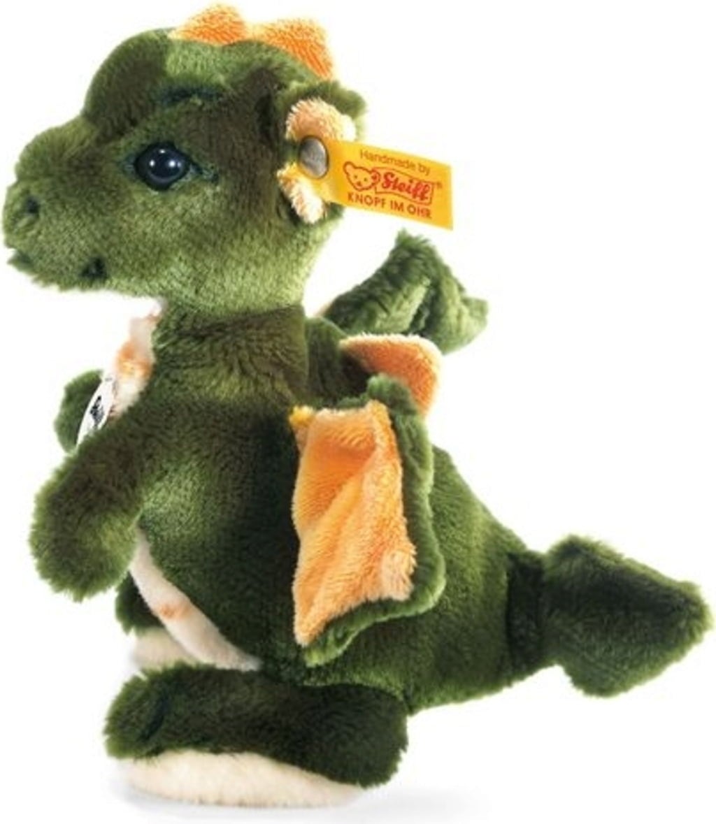 Muchos dragones tienen mala fama. Pero Raudi, por el contrario, es muy mimoso. Su suave pelaje sintético verde y blanco es especialmente mimoso. Las bolsitas de granulado cosidas en su interior crean una emocionante experiencia sensorial para los más pequeños. Los fieles ojitos de Raudi son de plástico.