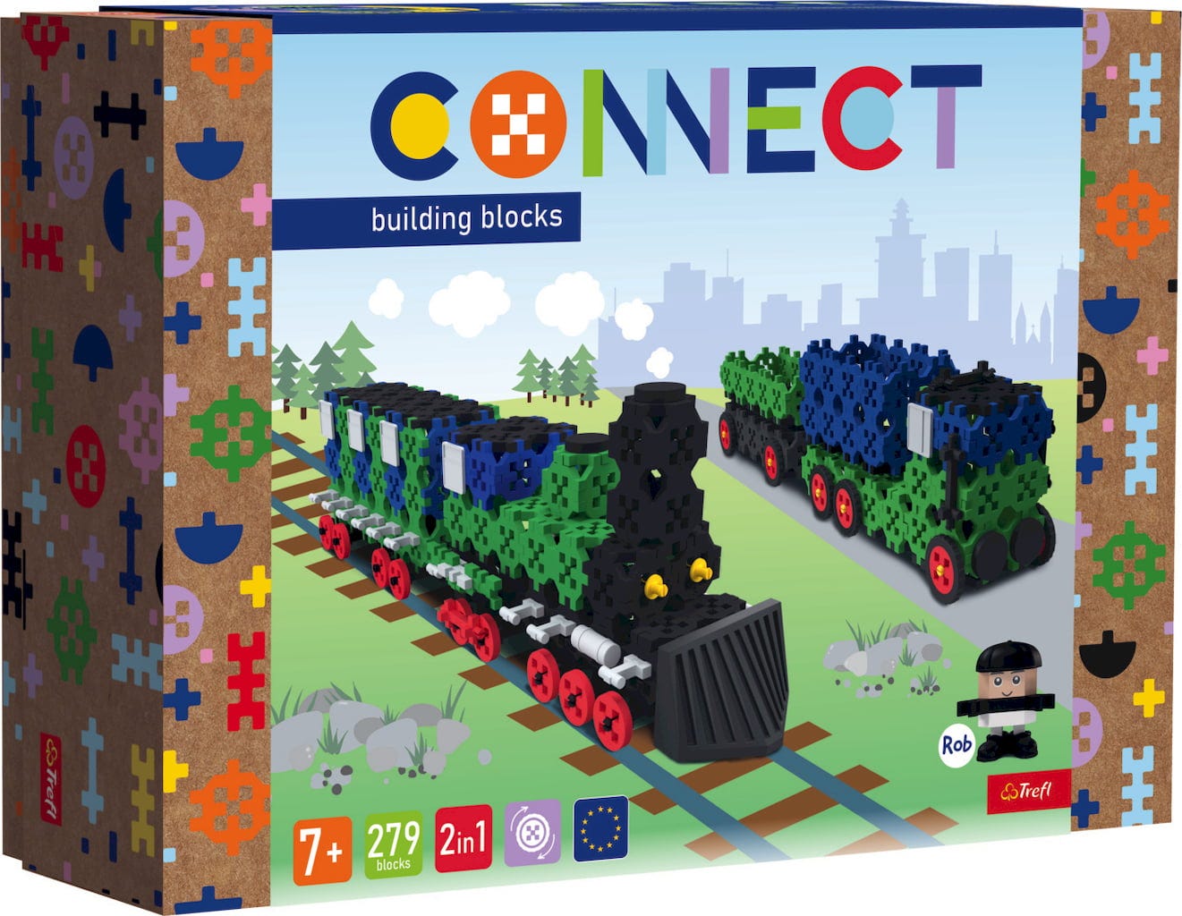 Construye y monta de forma diferente: con los ladrillos CONNECT de Trefl puedes montar un ferrocarril o un camión con remolque en 279 piezas. Incluye el personaje de juguete de Rob. Para niños a partir de 7 años.