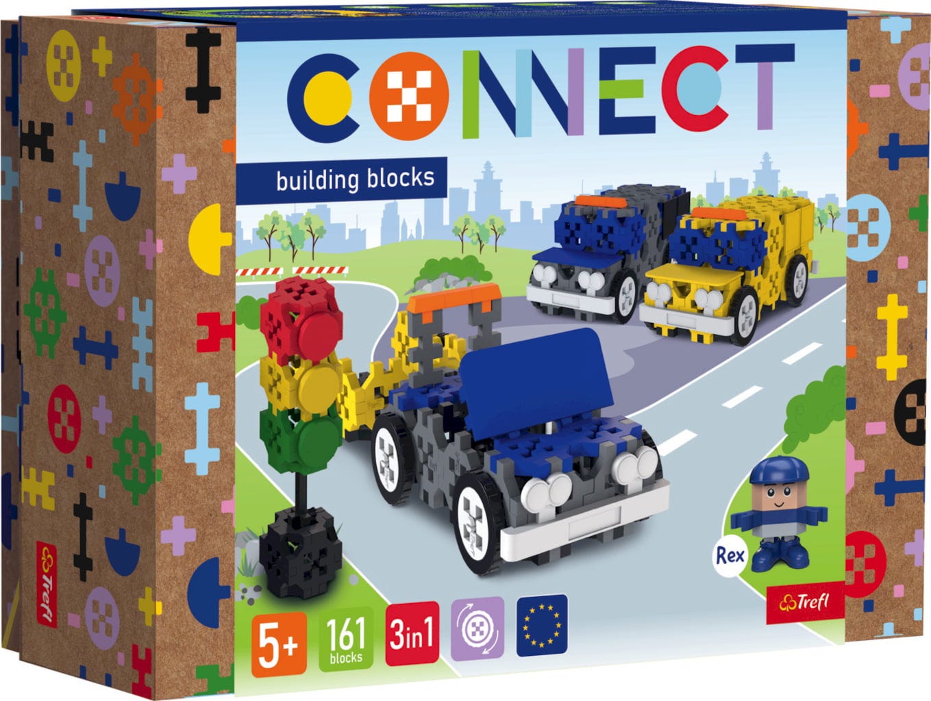 Construye y monta de forma diferente: con los ladrillos CONNECT de Trefl puedes montar una ambulancia, un coche de policía sencillo o un coche de policía con remolque en 161 piezas. Incluye el personaje de juguete Rex. Para niños a partir de 5 años.