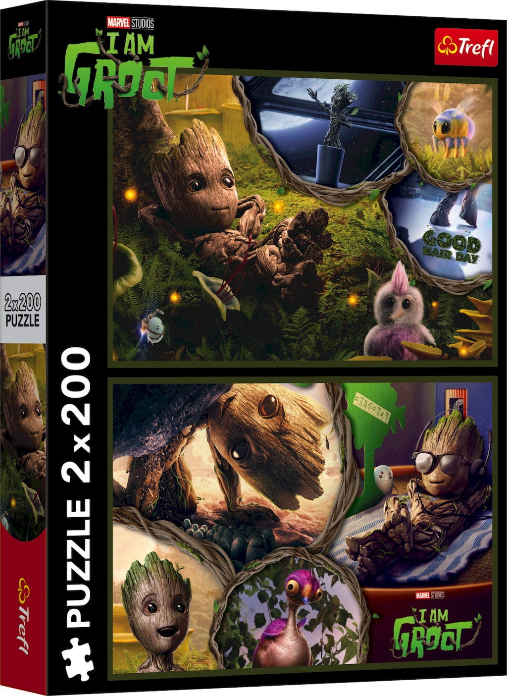 Groot, de Guardians of the Galaxy, aparece varias veces en estas dos imágenes, lo que aumenta el nivel de dificultad. Unas ilustraciones fantásticas que garantizan diversión durante el montaje y una gran satisfacción al terminarlas. Disfruta por partida doble con 200 piezas por imagen.