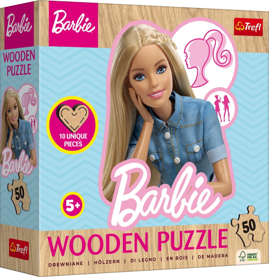 ¡Déjate encantar por este puzzle de madera dedicado a Barbie! Con el puzzle de madera de Trefl tus hijos pasarán tiempo desarrollando su concentración y atención mientras se divierten. El puzzle consta de 50 piezas.