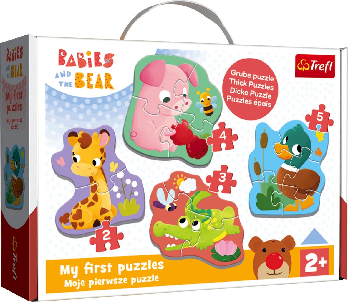 Las adorables figuras de animales 'Babies and the Bear' ofrecen a los más pequeños un comienzo ideal en esta aventura de puzles, fomentando el gusto por los rompecabezas. Los diferentes niveles de dificultad introducen gradualmente a su hijo en la habilidad de montar piezas. Sus coloridas ilustraciones despiertan curiosidad y alegría.
