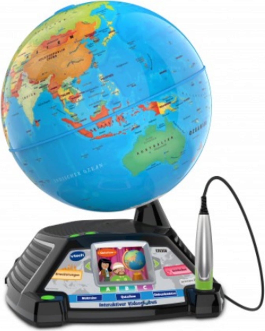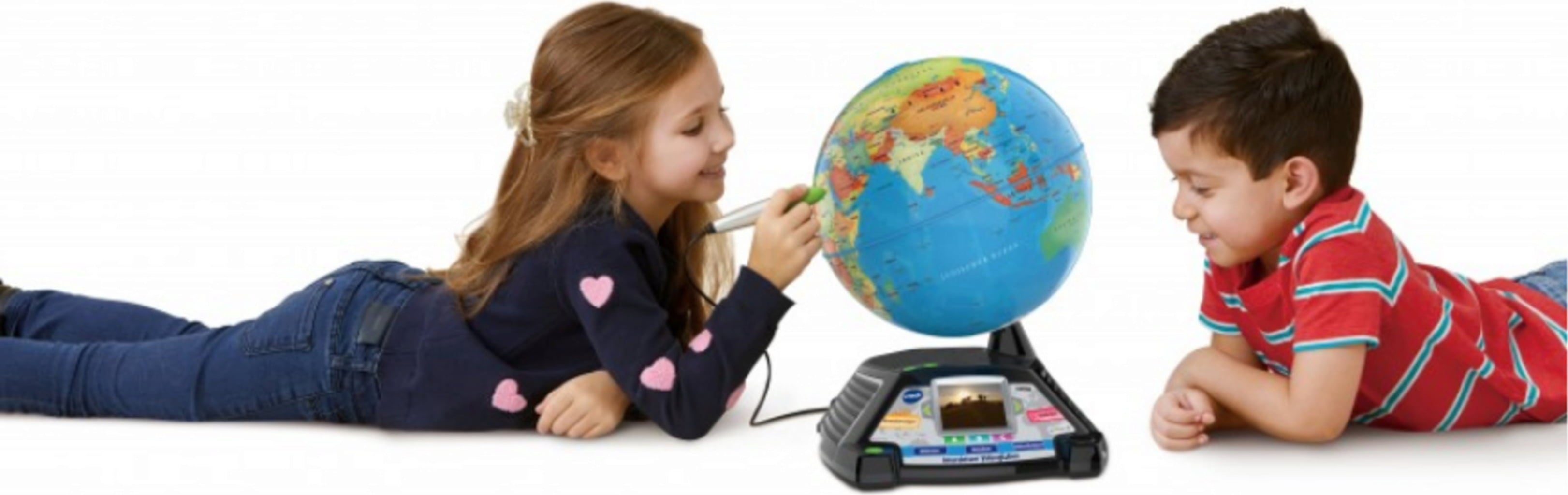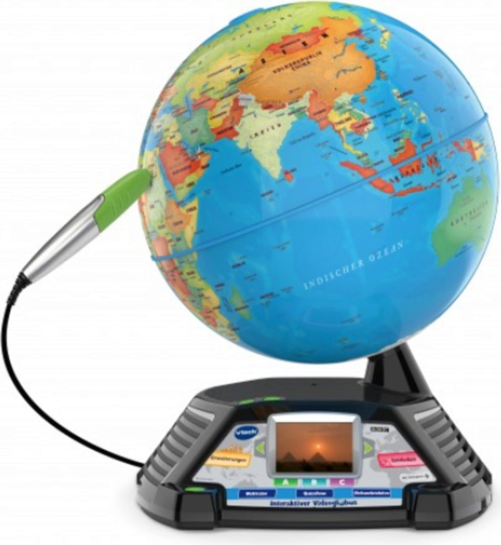Embárcate en un variado viaje de aprendizaje en el que aprenderás más de 9.000 datos fascinantes sobre nuestro planeta Si seleccionas un lugar del globo con el lápiz interactivo, la pantalla en color de 2,4'' integrada reproduce fantásticos vídeos que proporcionan a los jóvenes exploradores información interesante sobre el país y sus gentes. En el modo multijugador, dos trotamundos pueden competir entre sí y poner a prueba sus conocimientos de geografía. Para divertirse aún más aprendiendo, hay contenidos adicionales disponibles opcionalmente a través del gestor de descargas de VTech.