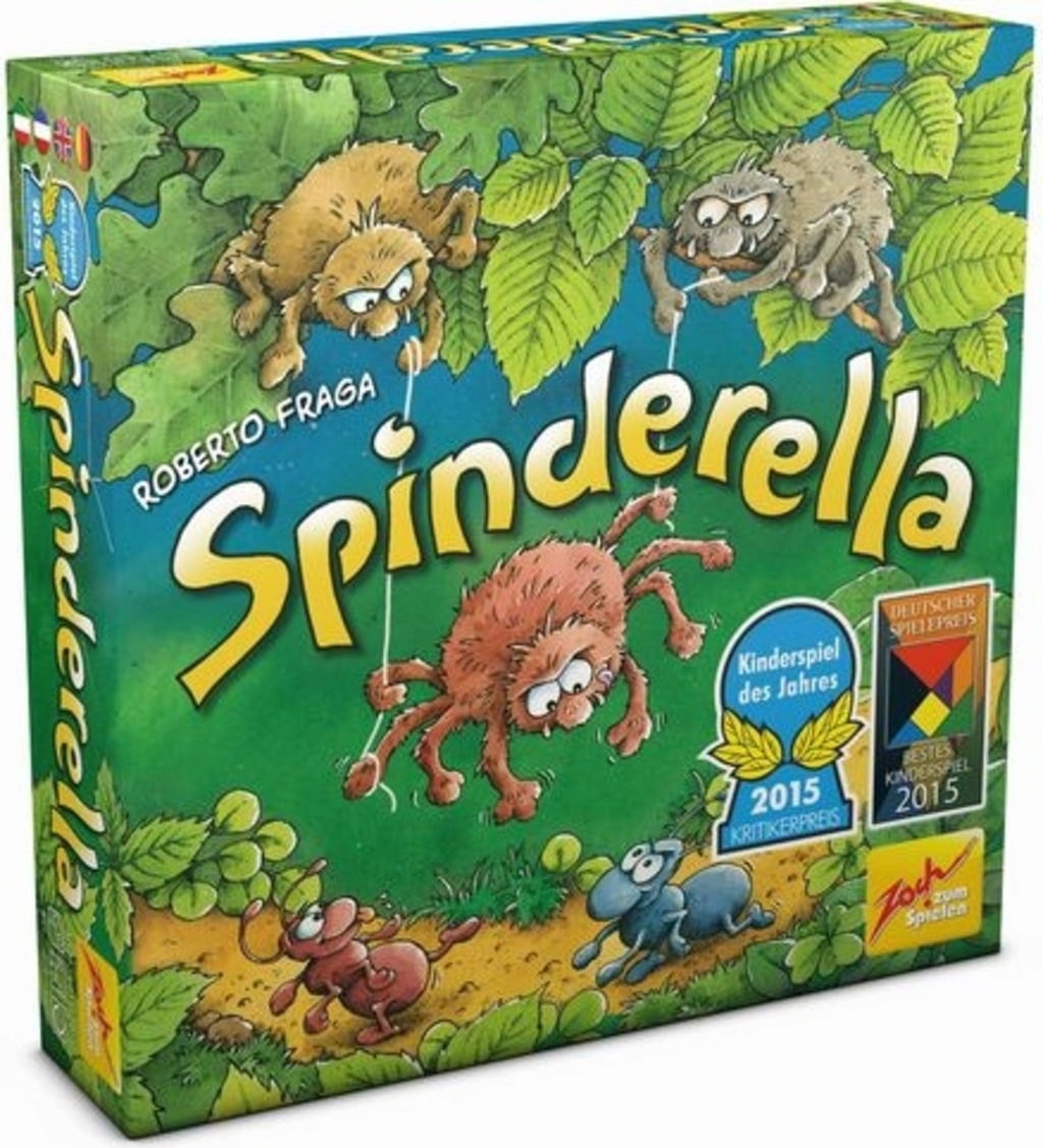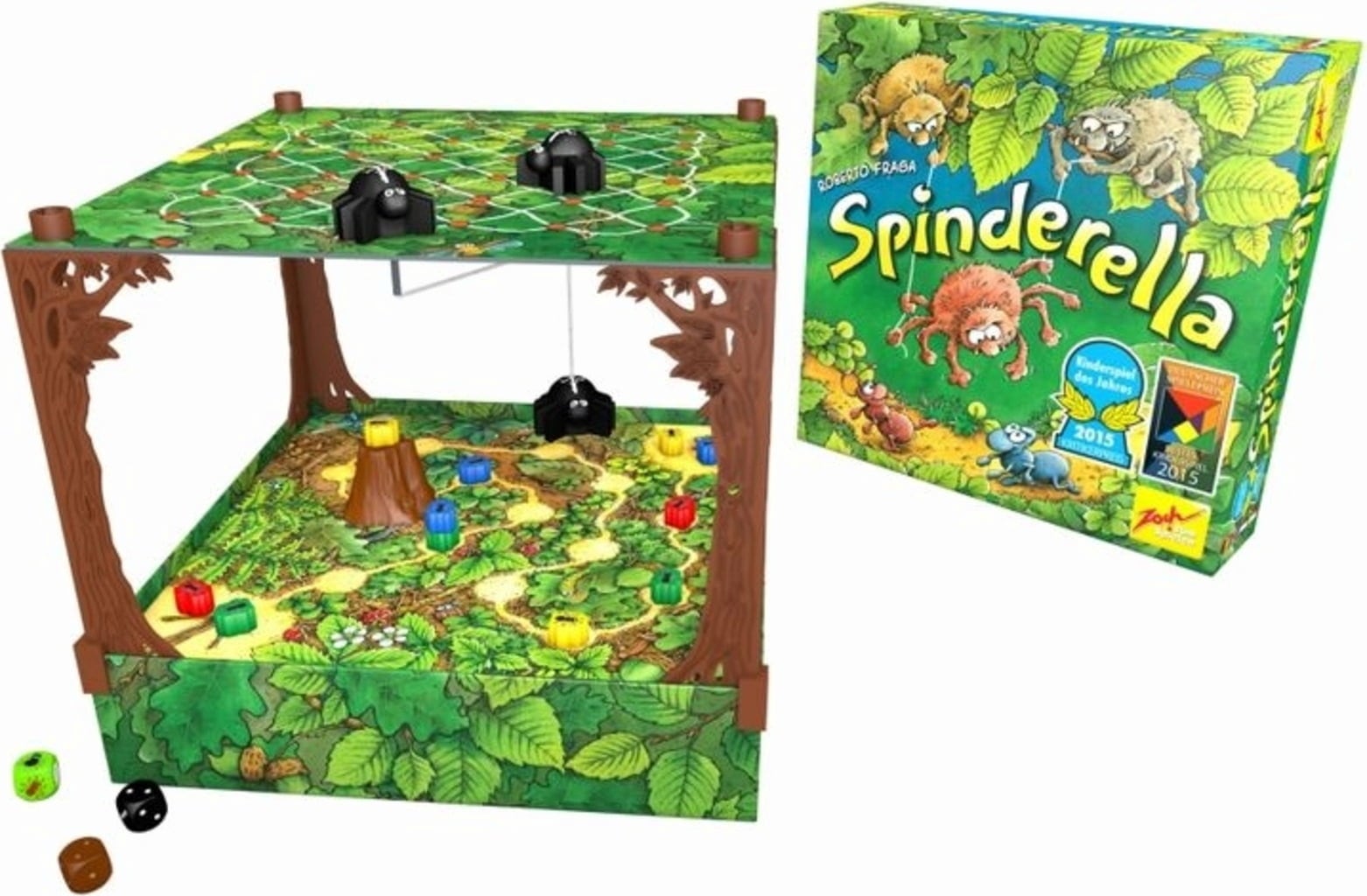 Contenido: 1 pista de carreras de hormigas, 1 pista de telaraña, 2 arañas (sin cuerda), 1 cuerda de araña con 2 accesorios magnéticos, 12 hormigas en 4 colores, 1 cubo de araña (blanco), 1 cubo de hormiga (marrón), 1 cubo de imágenes (verde), 1 trozo de corteza, 4 troncos de conexión, 4 botones, instrucciones.